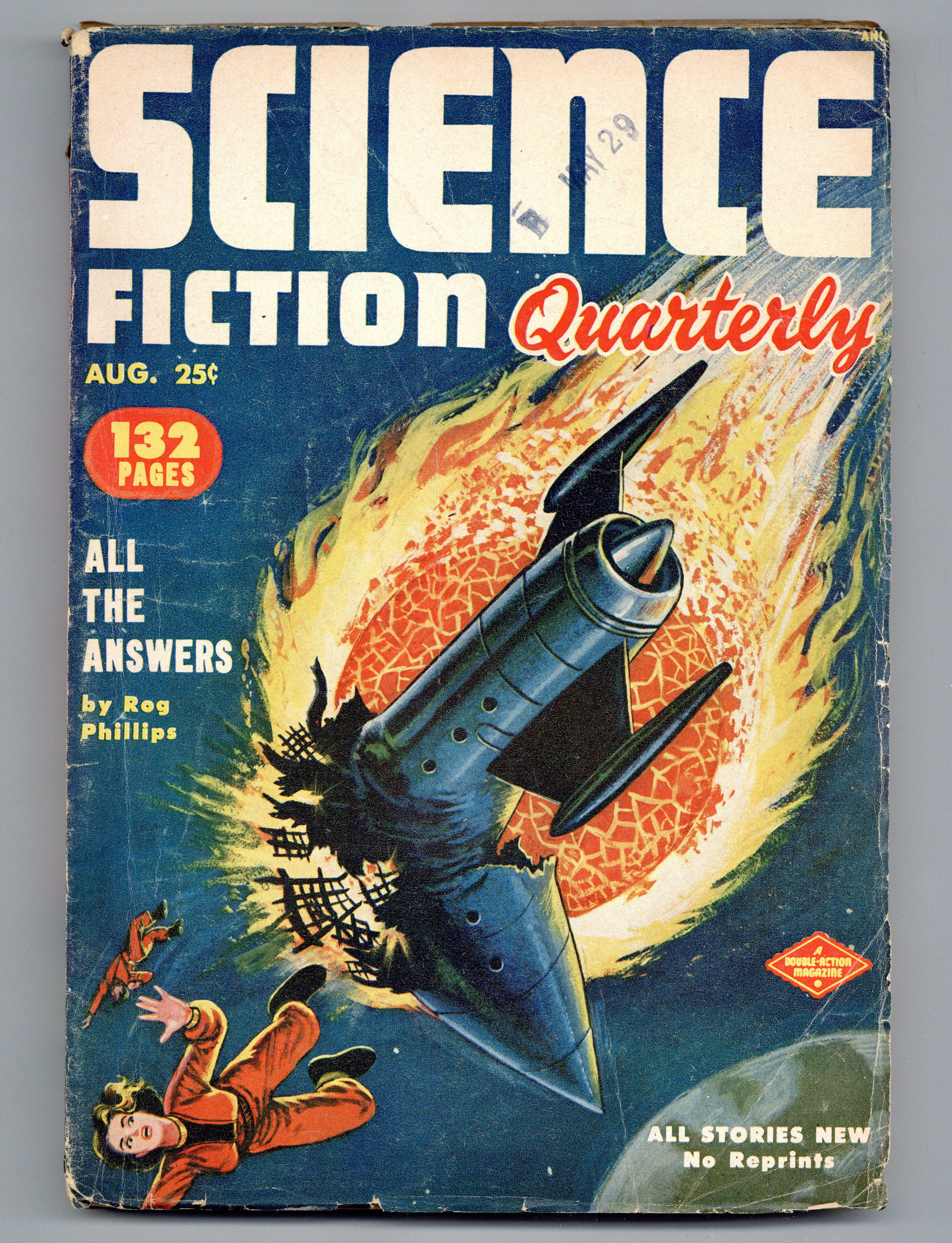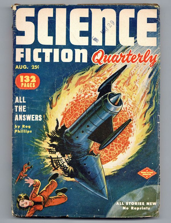 Cover by Milton Luros. Stories by Rog Phillips, Hamlin Daly, Vaseieos Garson, Milton Lesser, Alfred Coppel, Charles Dye, and S. A. Lombino. Interior illustrations by H. W. Kiemle, Milton Luros, Murphy, Peter Poulton. Softcover pulp magazine; 7-in. x 10-in.; 130 pages; B&W. Cover price $0.25.