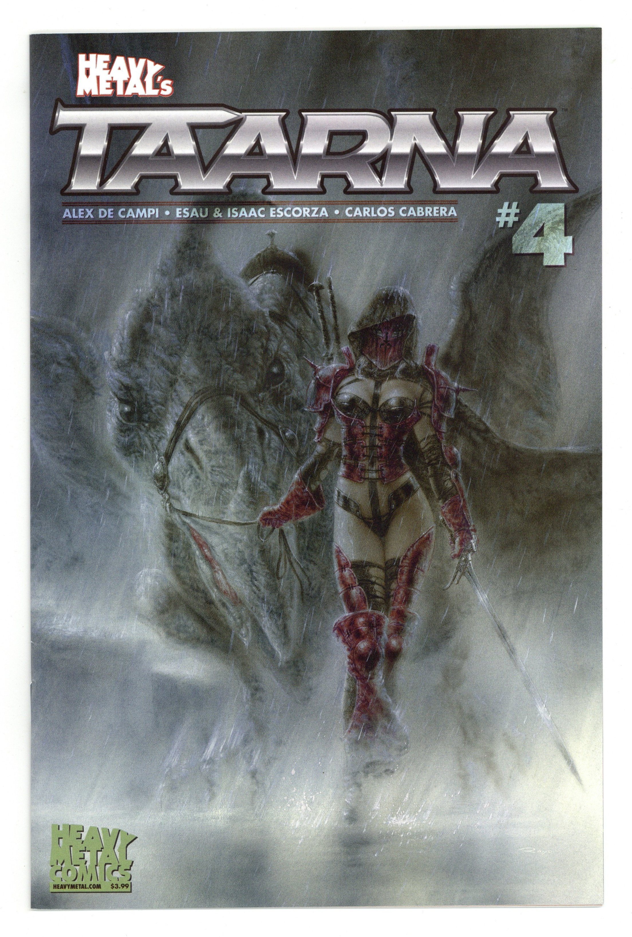 Published 2019 (est.) by Heavy Metal.$18.00Written by Alex De Campi. Art by Esau Escorza and Isaac Escorza. Cover by Luis Royo. Heavy Metal's Queen of Justice returns to defend a war torn world without rules, but will this be her final sacrifice? 28 pages, full color. Cover price $3.99.