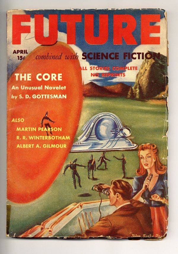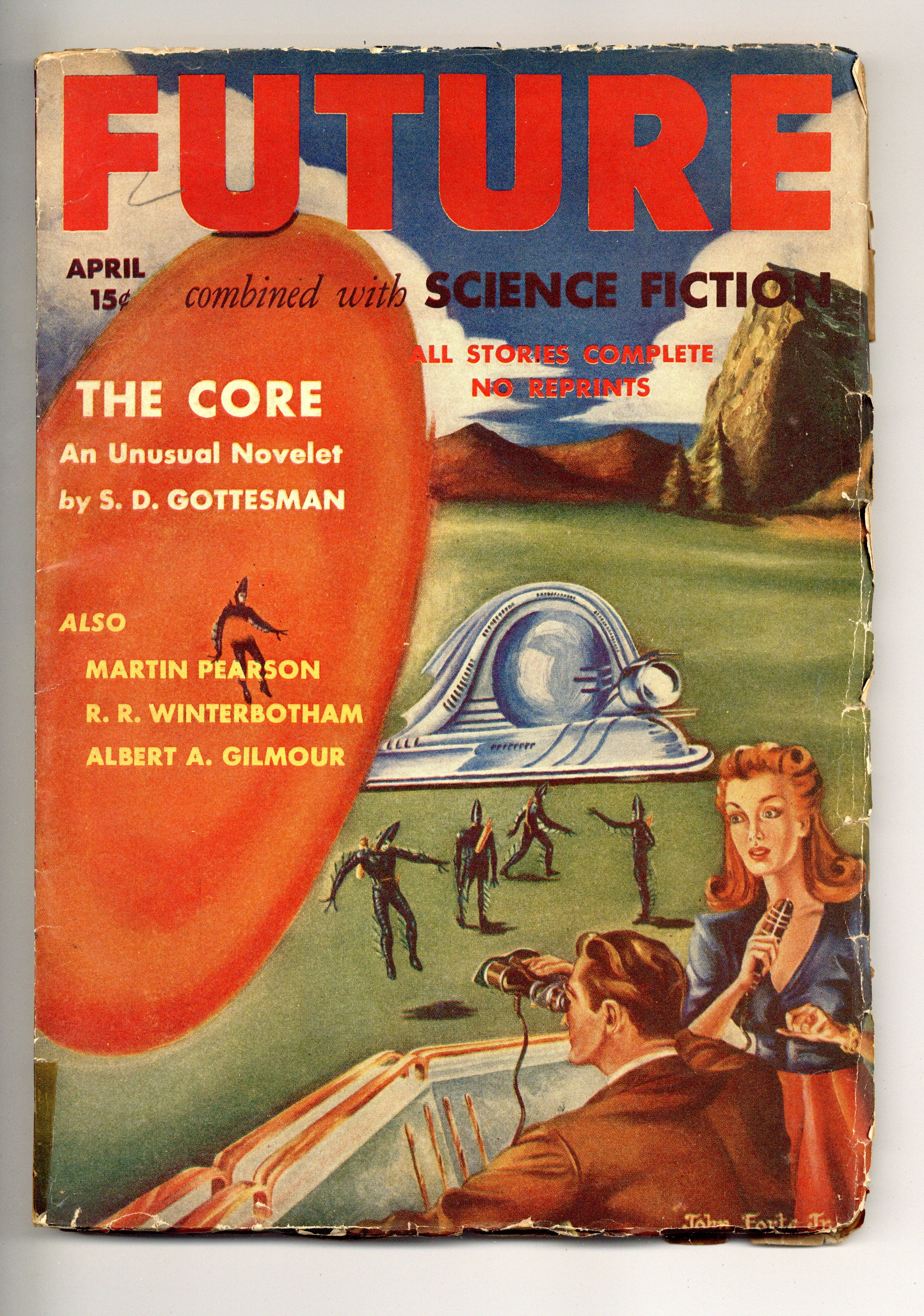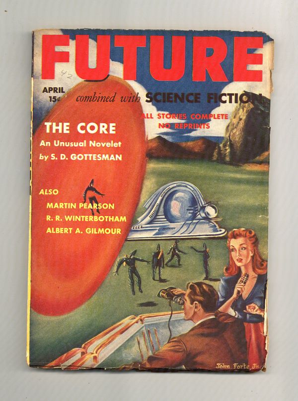 April 1942. Cover by John R. Forte, Jr. "The Core" by S. D. Gottesman. Other science fiction stories by Albert A. Gilmour, Richard Wilson, Carol Grey, Martin Pearson, Basil Wells, Bowen Conway, R. R. Winterbotham, Chester B. Conant, and Hannes Bok. Illustrations by Lin Streeter, Forte, Damon Knight, David A. Kyle, Hannes Bok. 7" x 10", black and white; 112 newsprint pages. Cover price $0.15.