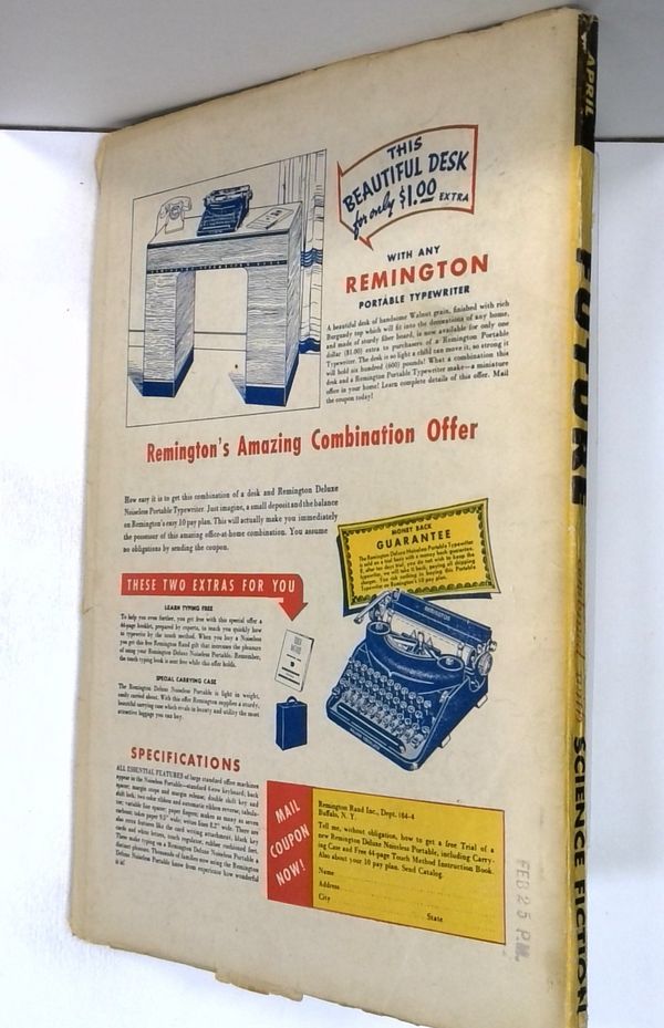 Published Apr 1942 by Columbia Publications.$2.65- Full length spine split. Front cover missing, back cover attached. Piece missing from back cover.