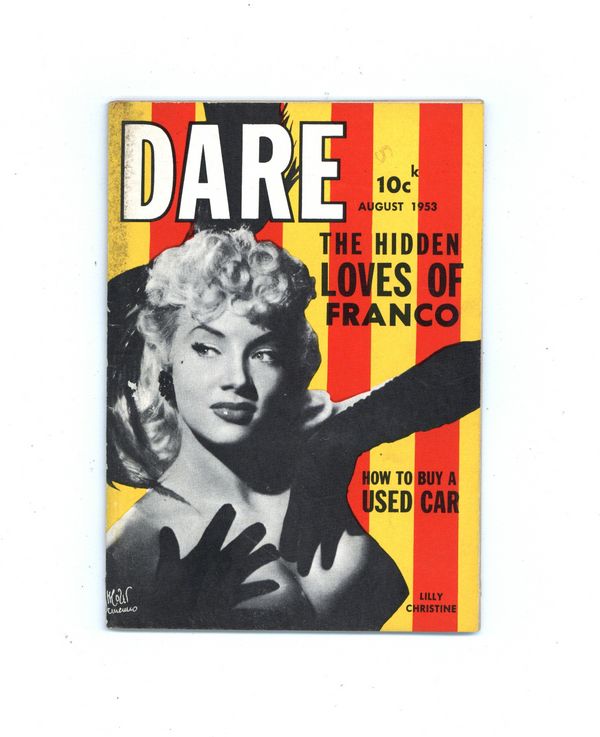 Published Aug 1953 by Fiction Publications.$45.00Canadian Edition - Volume 1, Issue 8 - August 1953. Men's interest magazine focusing on Military, Politics, celebrities and showgirls. 4-in. x 6-in., 68 pages, B&W Cover price $0.10.