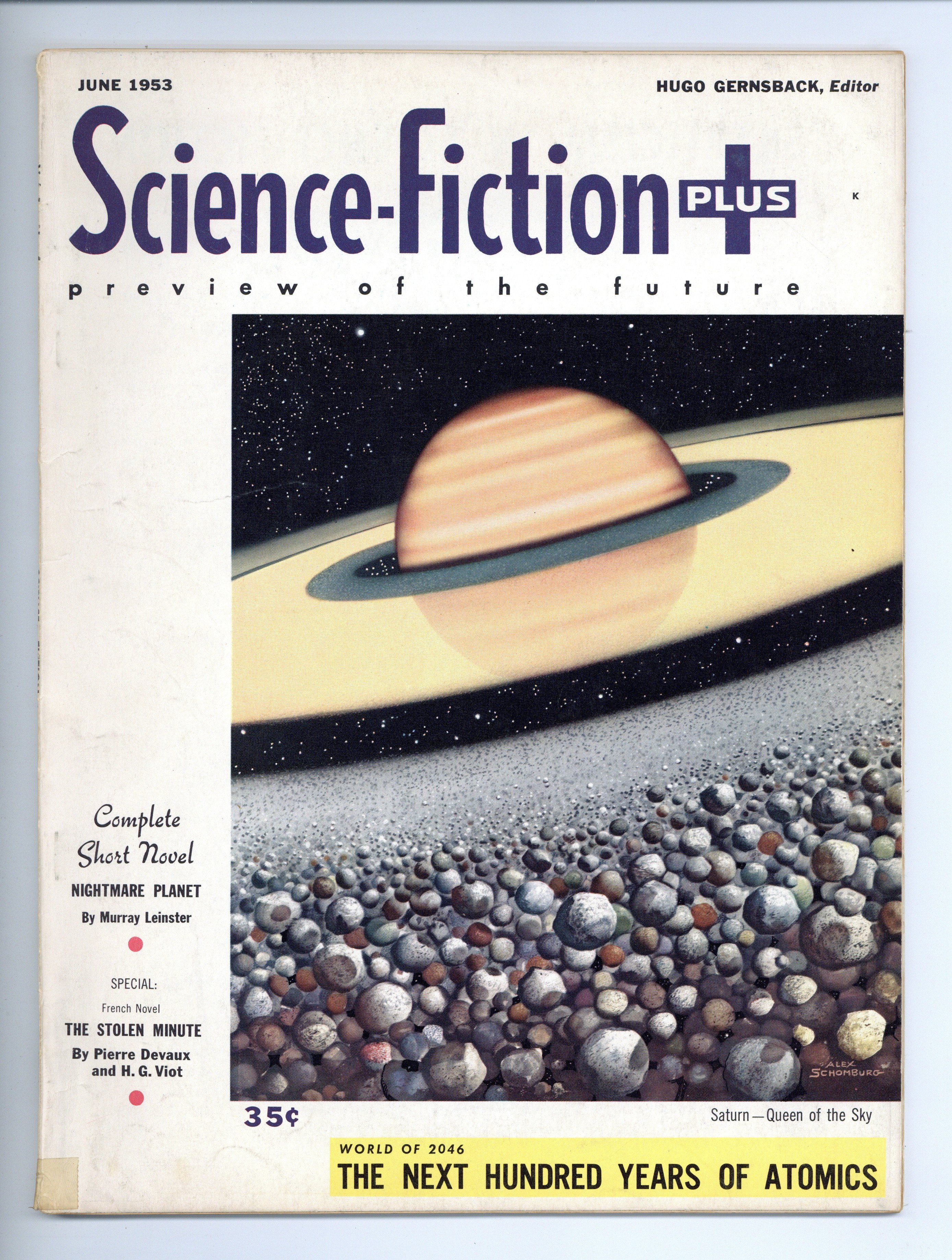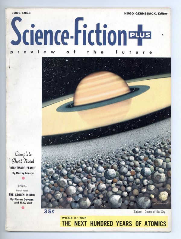 "Nightmare Planet" a complete short novel by Murray Leinster, and "The Spiral Intelligence" by Frank Belknap long, plus "The World in 2046" a prediction by Hugo Gernsback.