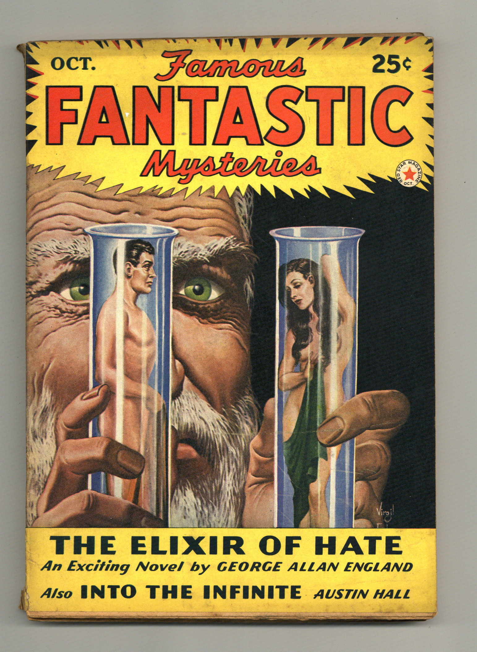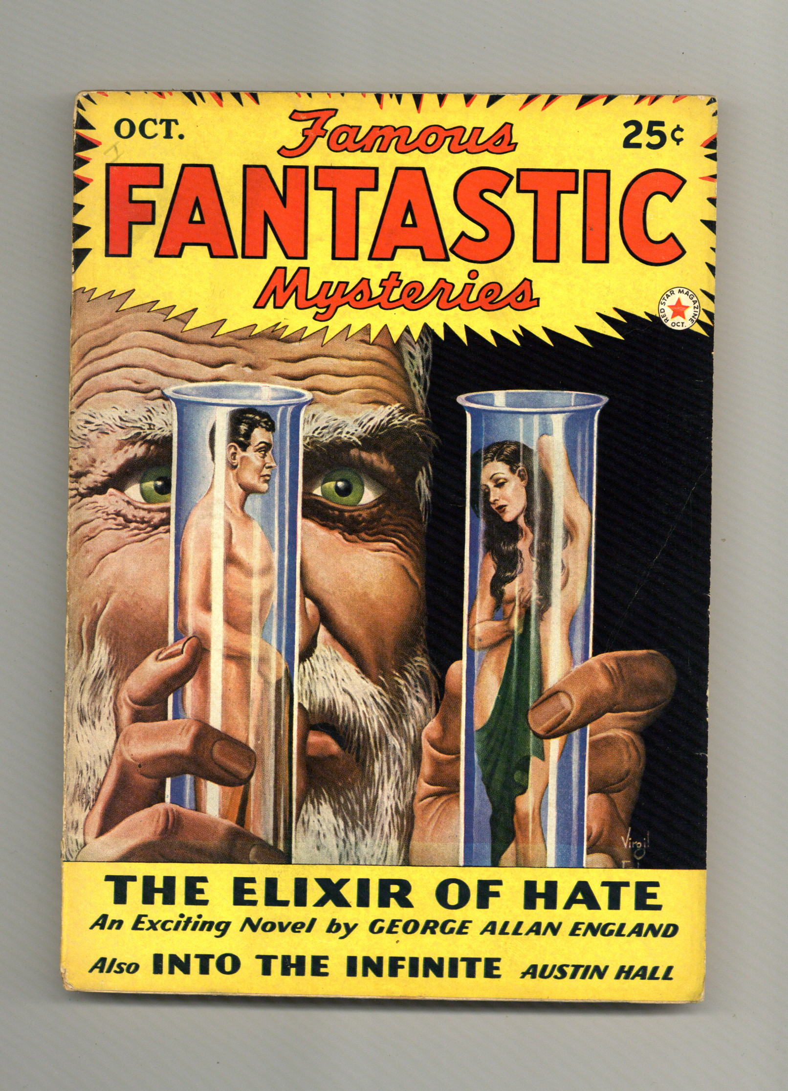 Volume 4, Issue 6 - October, 1942. Cover by Virgil Finlay. "The Elixir of Hate" by George Allan England and "Into the Infinite" by Austin Hall. Illustrations by Virgil Finlay and Frank R. Paul. Softcover Pulp, 6 1/2-in x 9 1/2, 130 Pages, B&W. Published by Frank A. Munsey Cover price $0.25.