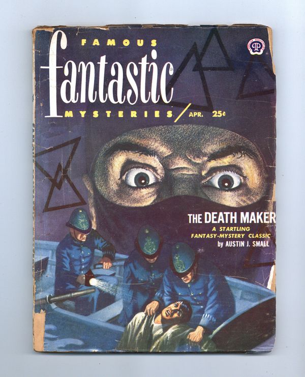 Volume 13, Issue 3 - April, 1952. Cover by Lawrence Stevens. Science fiction reprints: "The Death Maker" by Austin J. Small and "The New Sun" by J. S. Fletcher. Illustrations by Virgil Finlay, Lawrence Stevens 6.75-in. x 9-in.; black and white; 116 newsprint pages. Published by Popular Publications Cover price $0.25.