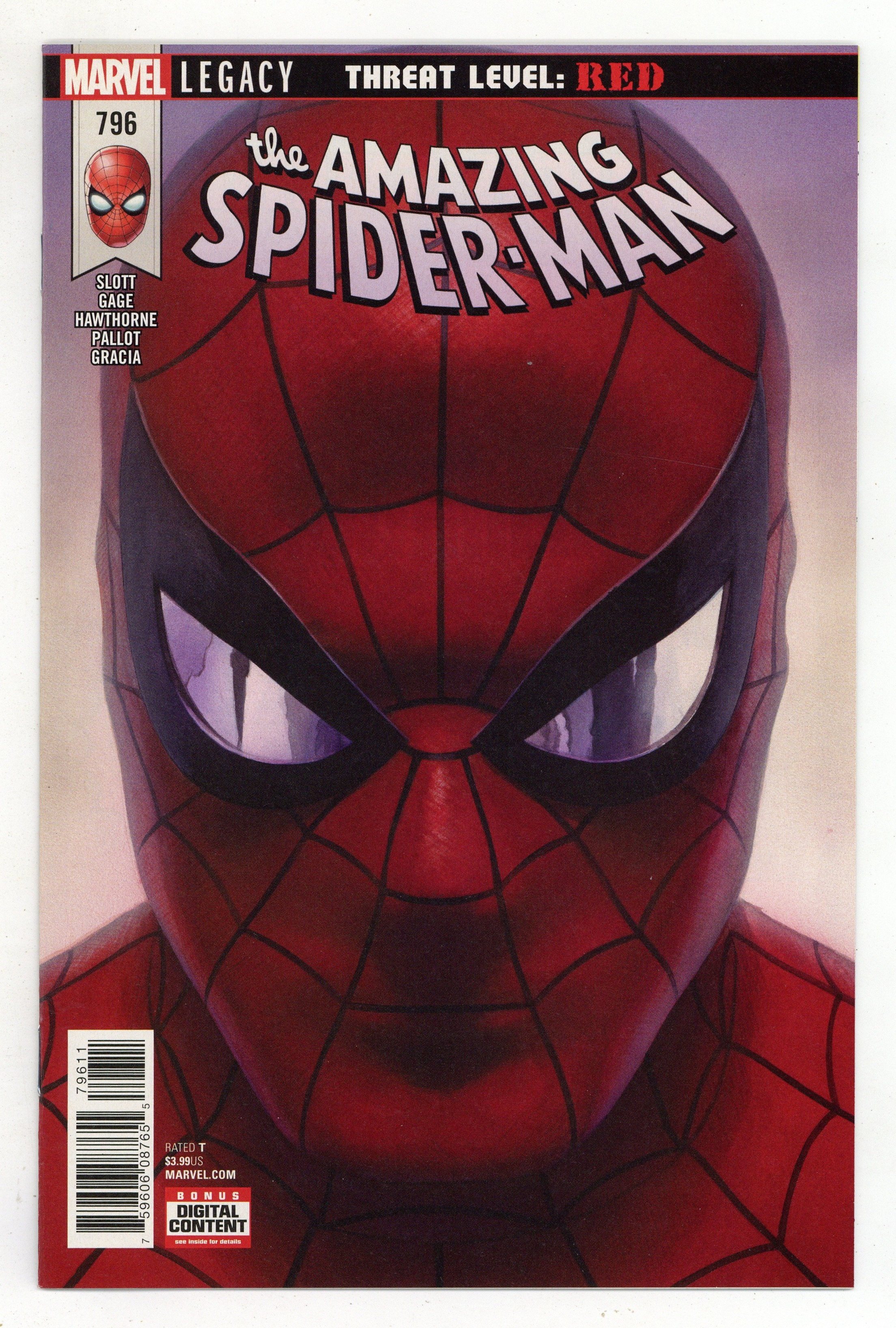 Threat Level Red: Part 3 of 3 - Written by Dan Slott and Christos Gage. Art by Mike Hawthorne. Cover by Alex Ross. You've watched for months as Norman Osborn has scoured the globe for a cure to the genetic tampering that prevents him from becoming the Green Goblin. IN THIS ISSUE…HE FINDS IT! And it spells the worst kind of trouble for your Friendly Neighborhood Spider-Man! 28 pages, full color. Rated T Cover price $3.99.