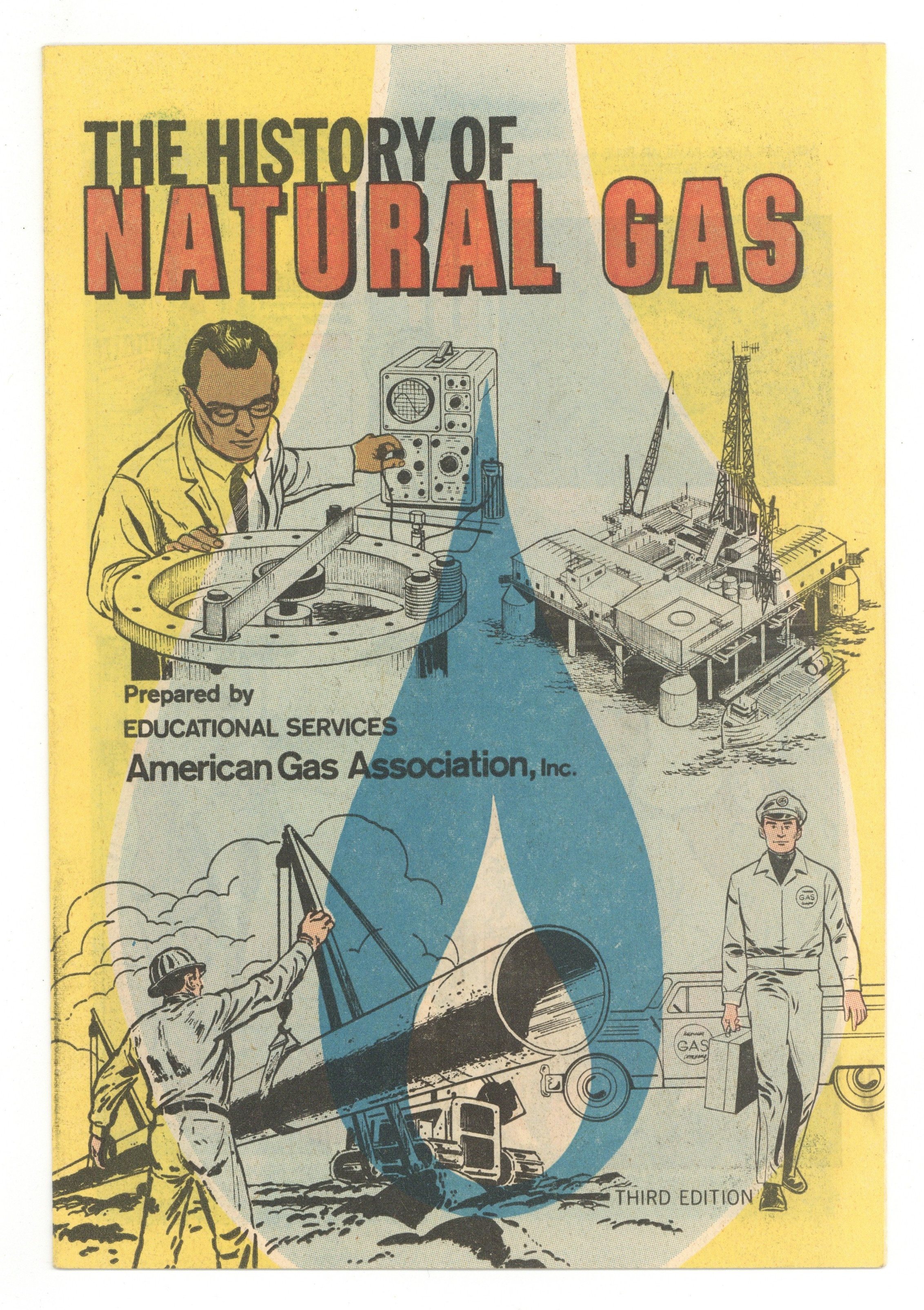 1976 Third Edition. History of Natural Gas was released by the Educational Service Bureau of the American Gas Association. An interesting promotional comic telling the history of natural gas development together with interesting related facts. 16 pages, full color.