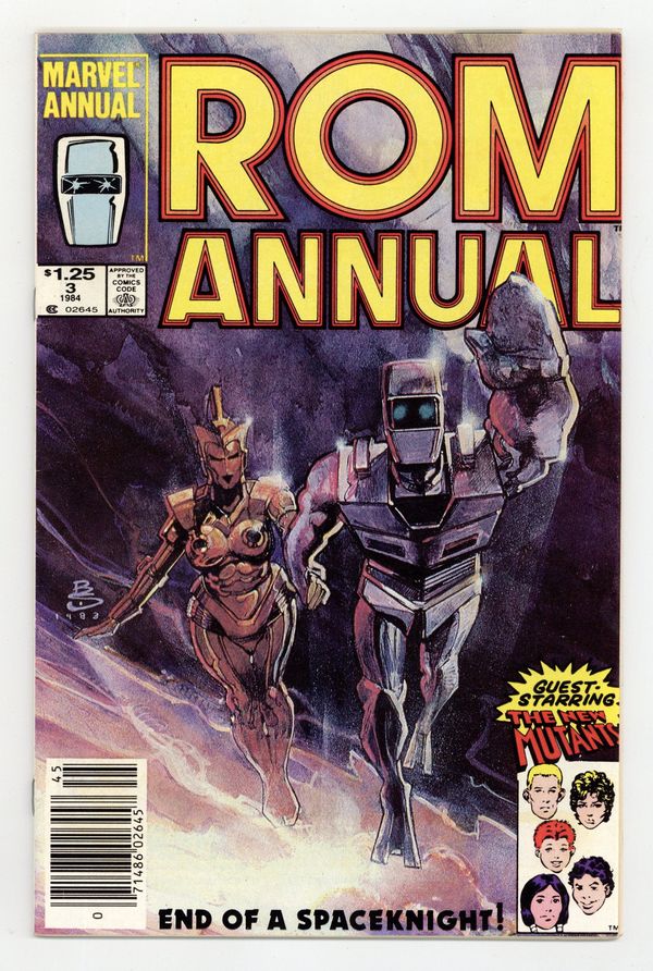 Canadian edition with $1.25 cover price - Guest-starring Professor X and the New Mutants (story continues in Rom #61). Story by Bill Mantlo. Art by W.M. Johnson. As Rom and Starshine confront Dire Wraiths who threaten children, Rom soon realizes Brandy is losing her humanity within the cold steel of her Spaceknight armor. That's when Rom's old enemy the mutant known as Hybrid attacks. What sinister plans does this creature have for Starshine? One thing is for sure, she will never be the same again. Luckily Professor Xavier and his students arrive to lend a helping hand, or have they only arrived to meet their doom? Find out in "Prodigal Son!" 48 pages, FC. Cover price $1.25.