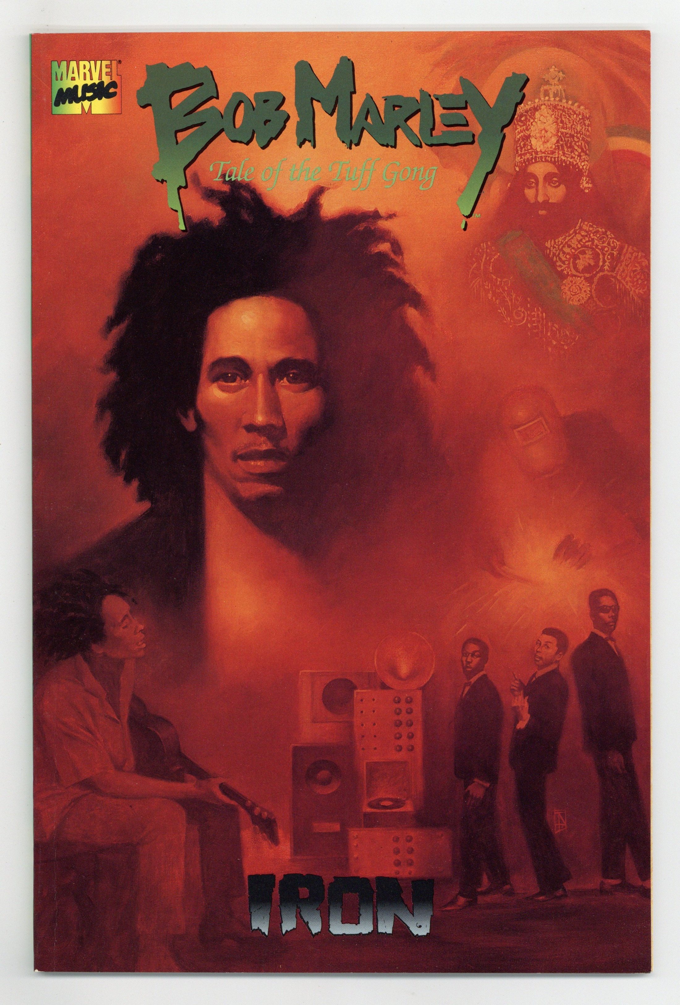 Cover by Tennyson Smith. Written by Charles E. Hall. Art by Gene Colan and Tennyson Smith. Foreword by U2's Bono. Beginning the life story of the reggae superstar who grew out of poverty to change the world. BOOK ONE: IRON follows Bob's early days in Jamaica and the formation of his band, the Wailers. Tennyson Smith's painted finishes over Gene Colan's pencils make this book sizzle! Also contains a history of the Rastafari Movement, painted by Tennyson Smith. 48 pages, bookshelf format. Cover price $5.95.