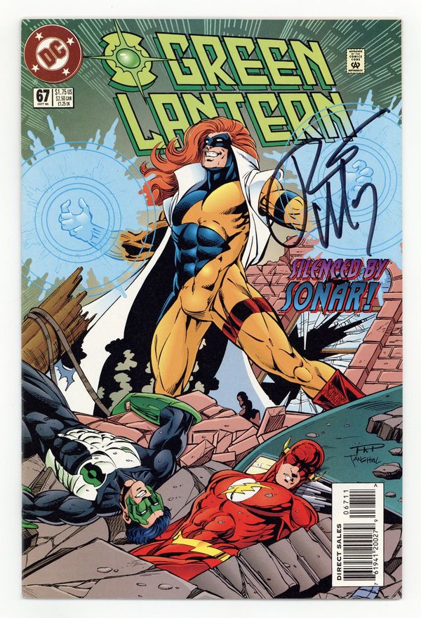 "Fast Friends?!" Part 2 of 2. Guest-starring the Flash. Story by Ron Marz. Art by Paul Pelletier and Romeo Tanghal. The Scarlet Speedster and Emerald Knight must find away to work together if they're gonna save their cities from the destructive power of Sonar! NOTE: This 2-part story does a lot to set up the love/hate friendship of young Kyle Rayner and Wally West. Grant Morrison continues their competitive relationship in the pages of JLA. - Odinson, Lone Star Comics Archivist Cover price $1.75.