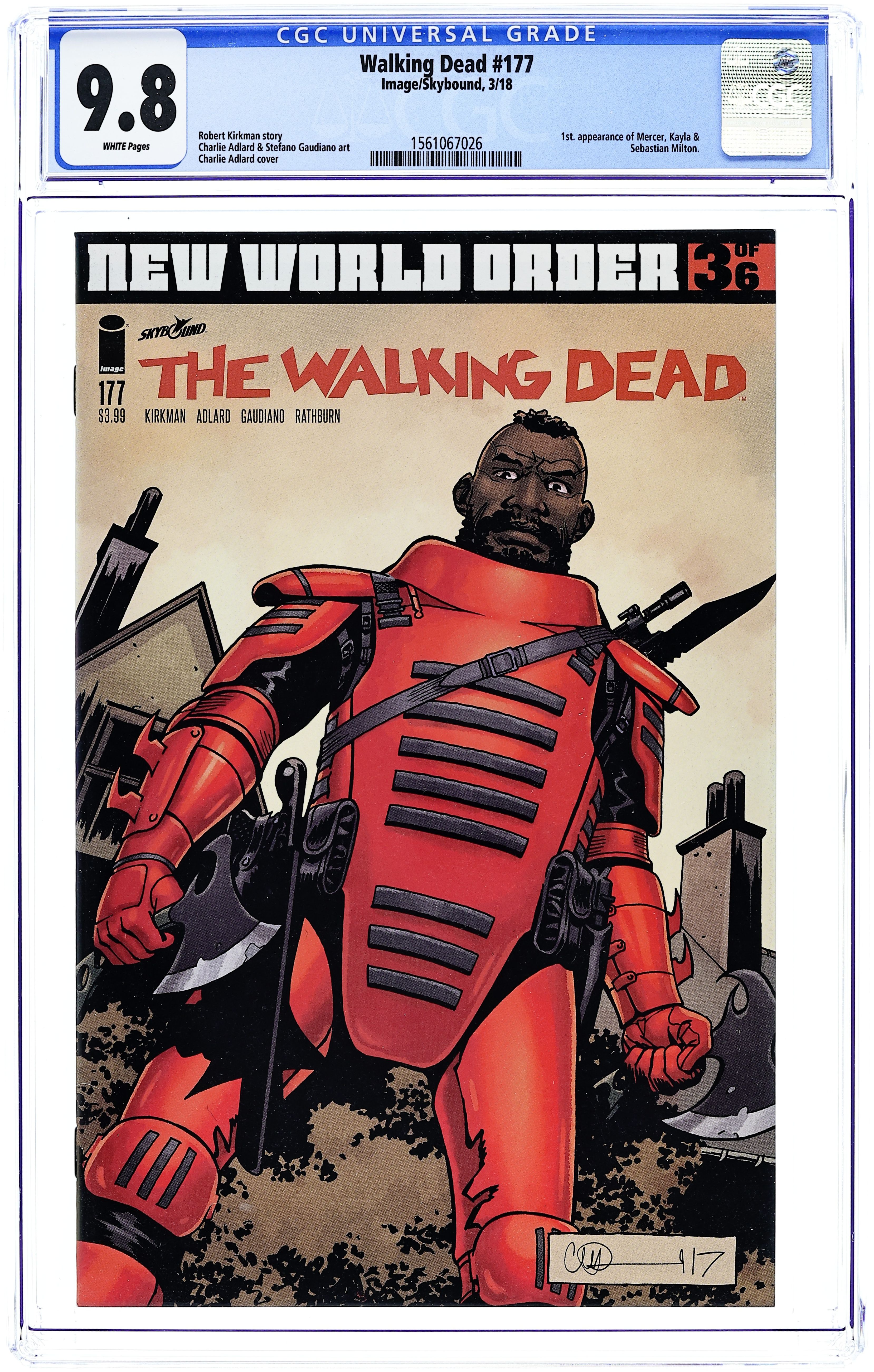 New World Order: Part 3 of 6 - Written by Robert Kirkman. Art by Charlie Adlard, Stefano Gaudianoa nd Cliff Rathburn. Cover by Charlie Adlard and Dave Stewart. - Meet Officer Mercer. 28 pages, B&W. Rated M Cover price $3.99.