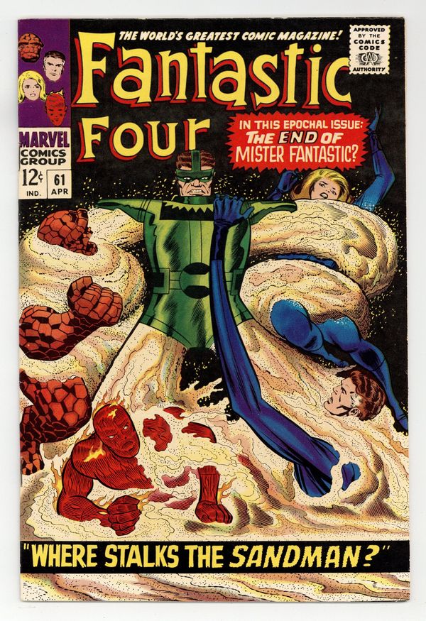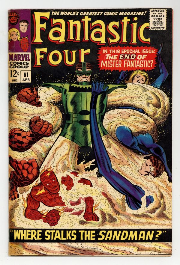 Ends Feb 23 8:04 PM CST Bid History 6 bids Current Bid $16 Your Secret Max Bid If you'd like to bid, please log in or register. Cover pencils by Jack Kirby, inks by Joe Sinnott. Where Stalks the Sandman?, script by Stan Lee and Jack Kirby (co-plot), pencils by Jack Kirby, inks by Joe Sinnott; The Sandman attacks the FF. During the battle, Reed is pulled into the Negative Zone and feared dead. Brief appearances by the Silver Surfer, the Inhumans, and Peter Parker. Reprinted in Marvel's Greatest Comics # 44. 36 pgs. $0.12. Cover price $0.12.