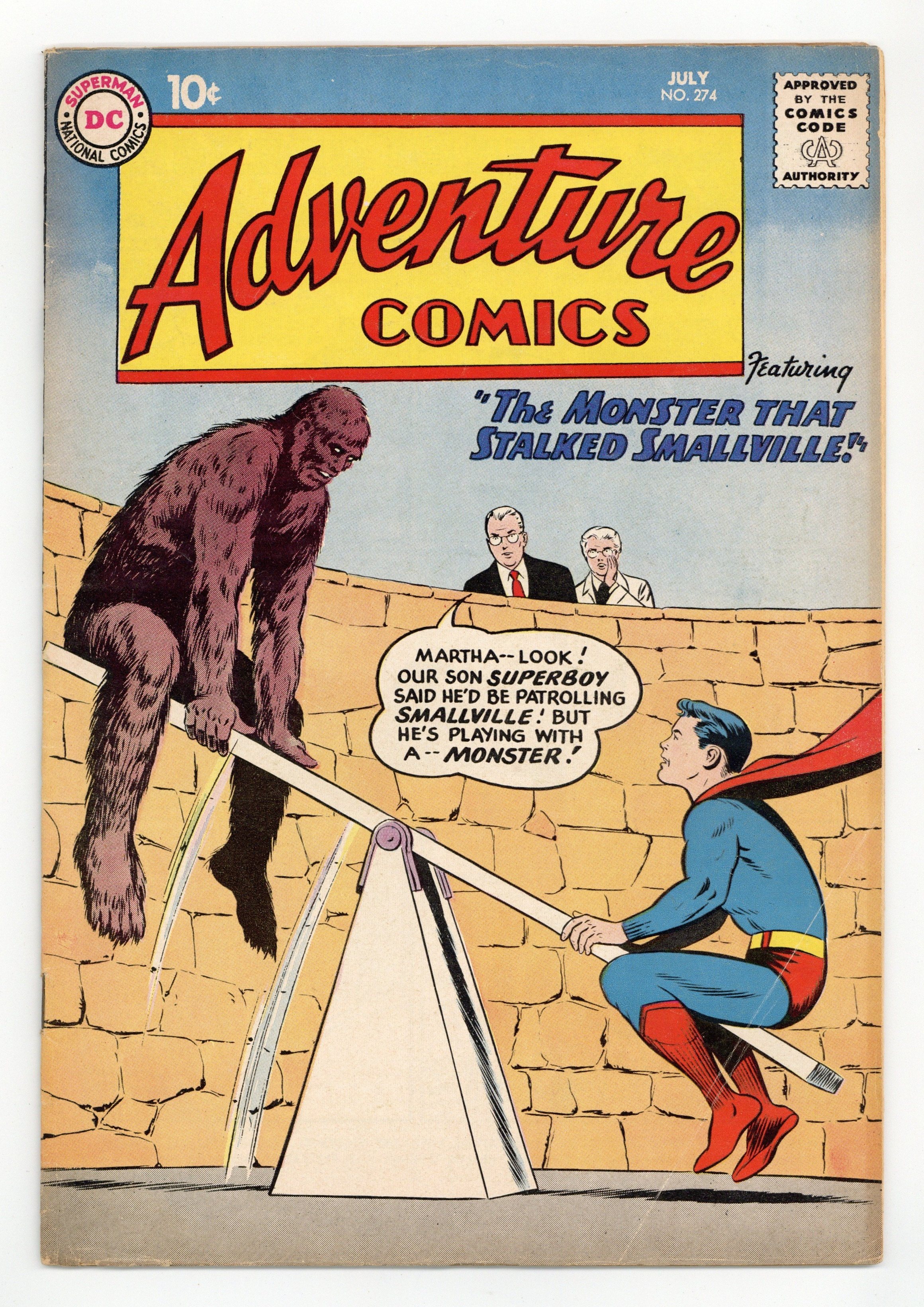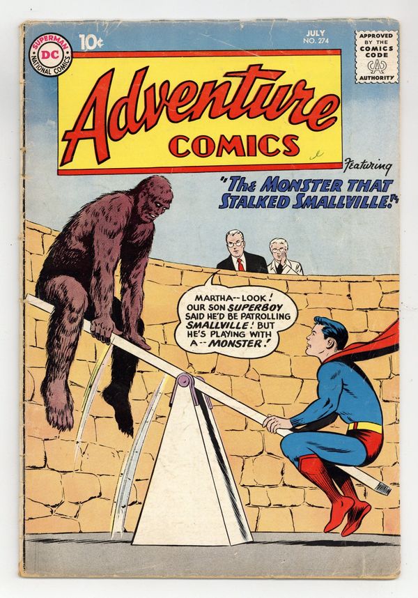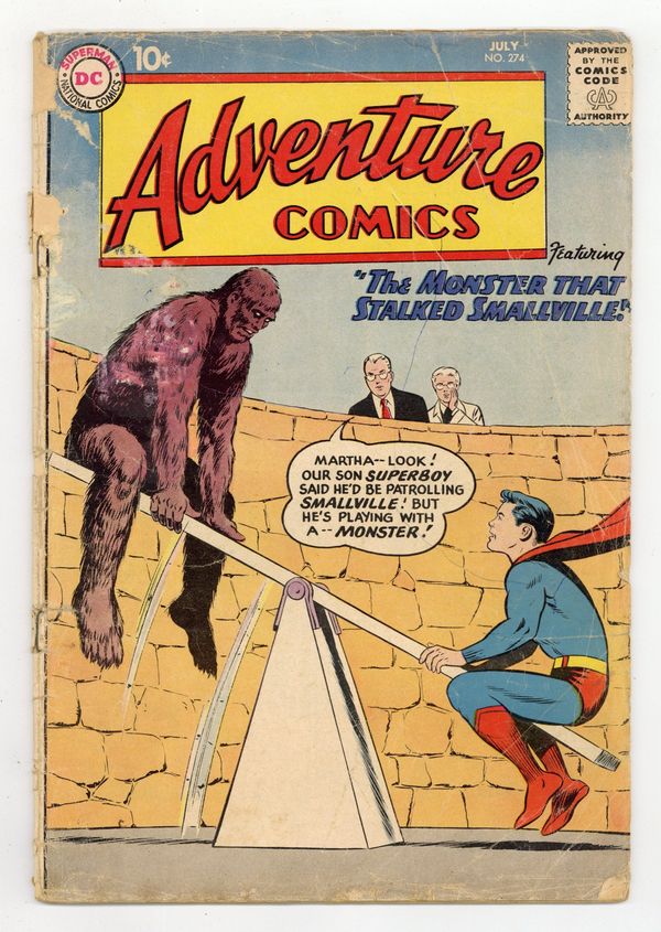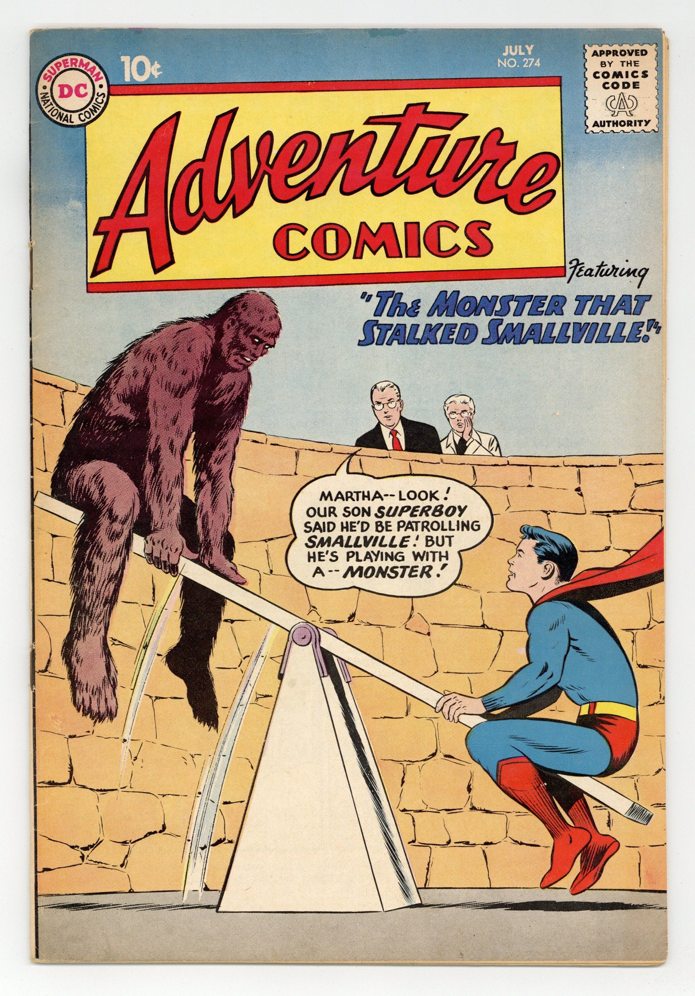 Cover pencils by Curt Swan, inks by Stan Kaye. The Monster That Stalked Smallville, script by Robert Bernstein, art by George Papp; Superboy brings a monster to Smallville as a friend, which upsets everybody in town. Aqua-Queen!, art by Ramona Fradon; After Aquaman doesn't pick her in a swimming meet, Dale Conroy vows to prove she's as good as he is. Revenge of the River Demon starring Congorilla, script by Robert Bernstein, art by Howard Sherman. 36 pages, Full Color. Cover price $0.10.