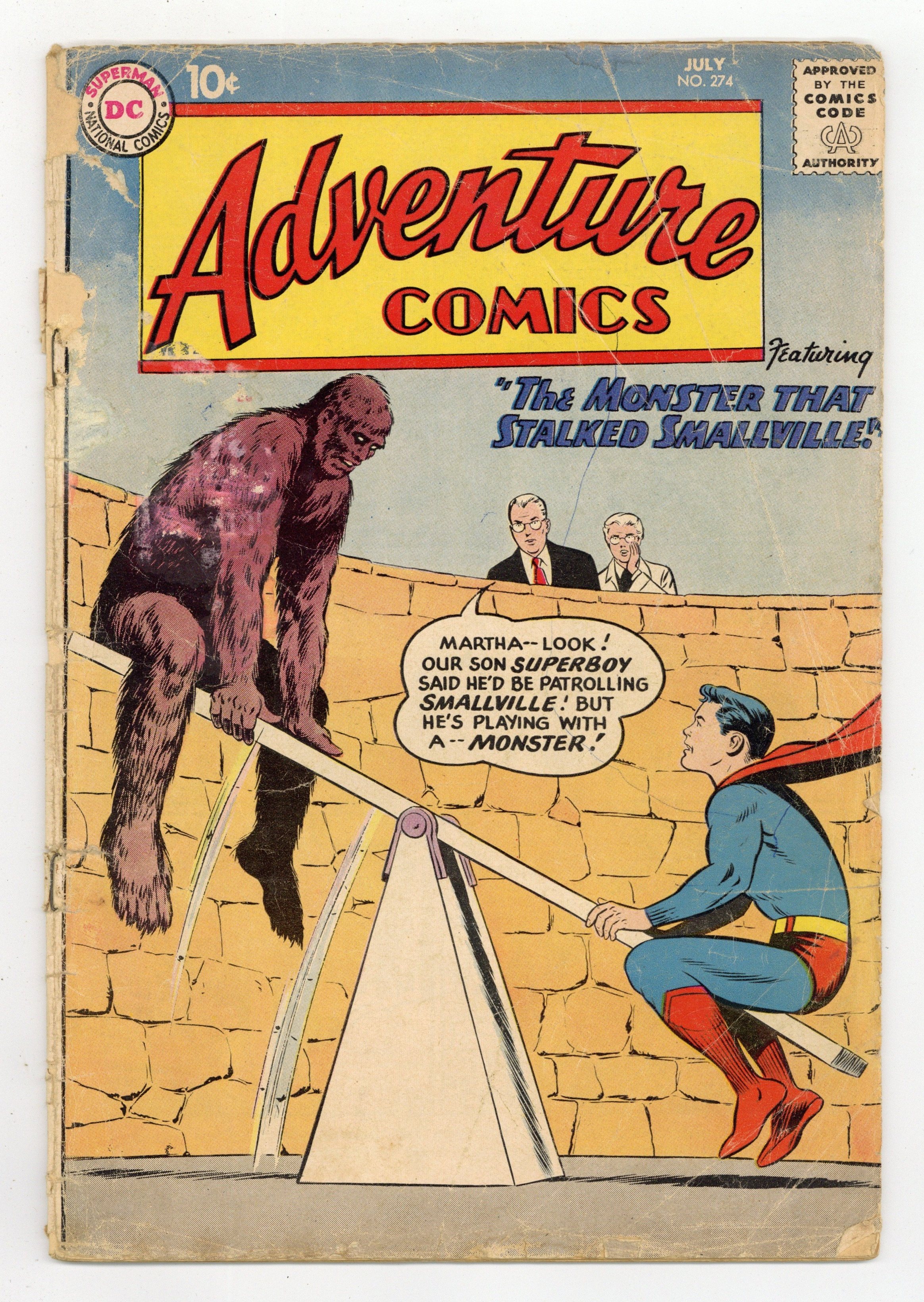 $18.50Cover pencils by Curt Swan, inks by Stan Kaye. The Monster That Stalked Smallville, script by Robert Bernstein, art by George Papp; Superboy brings a monster to Smallville as a friend, which upsets everybody in town. Aqua-Queen!, art by Ramona Fradon; After Aquaman doesn't pick her in a swimming meet, Dale Conroy vows to prove she's as good as he is. Revenge of the River Demon starring Congorilla, script by Robert Bernstein, art by Howard Sherman. 36 pages, Full Color. Cover price $0.10.