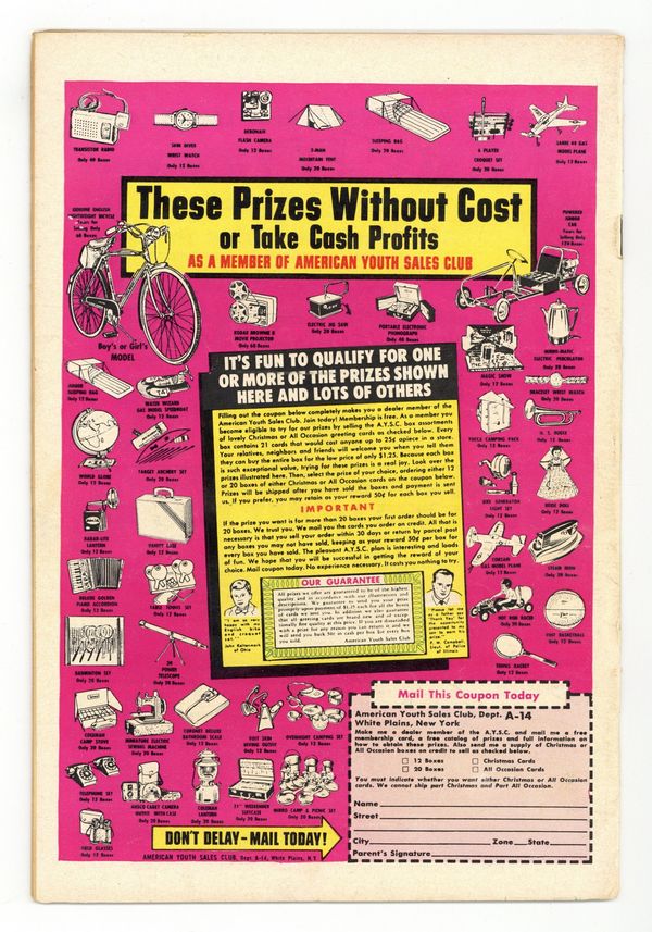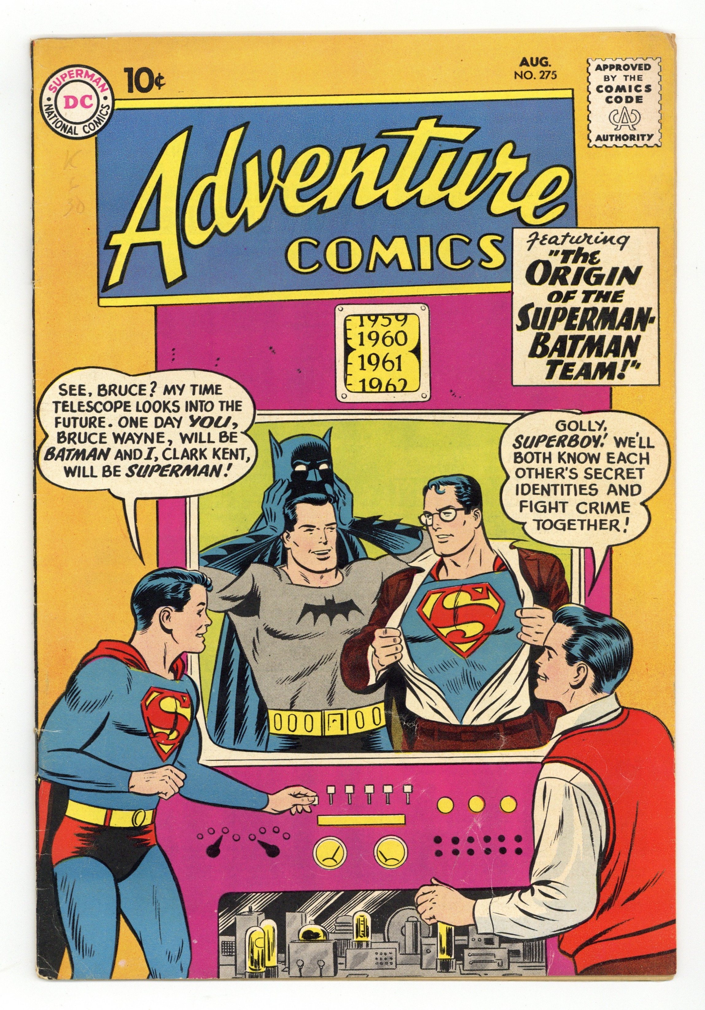 Cover pencils by Curt Swan, inks by Stan Kaye. The Origin of the Superman-Batman Team!, script by Jerry Coleman, art by George Papp; The Wayne family moves to Smallville and young Bruce Wayne assumes the identity of the Flying Fox, helping Superboy fight crime. House ad for Superman Annual #1. Champion of the World starring Congorilla, script by Robert Bernstein, art by Howard Sherman; Congo Bill and his gorilla alter ego help a boxer regain his self-confidence in the ring. The Interplanetary Mission! starring Aquaman, script by Robert Bernstein, art by Ramona Fradon. 36 pages, Full Color. Cover price $0.10.