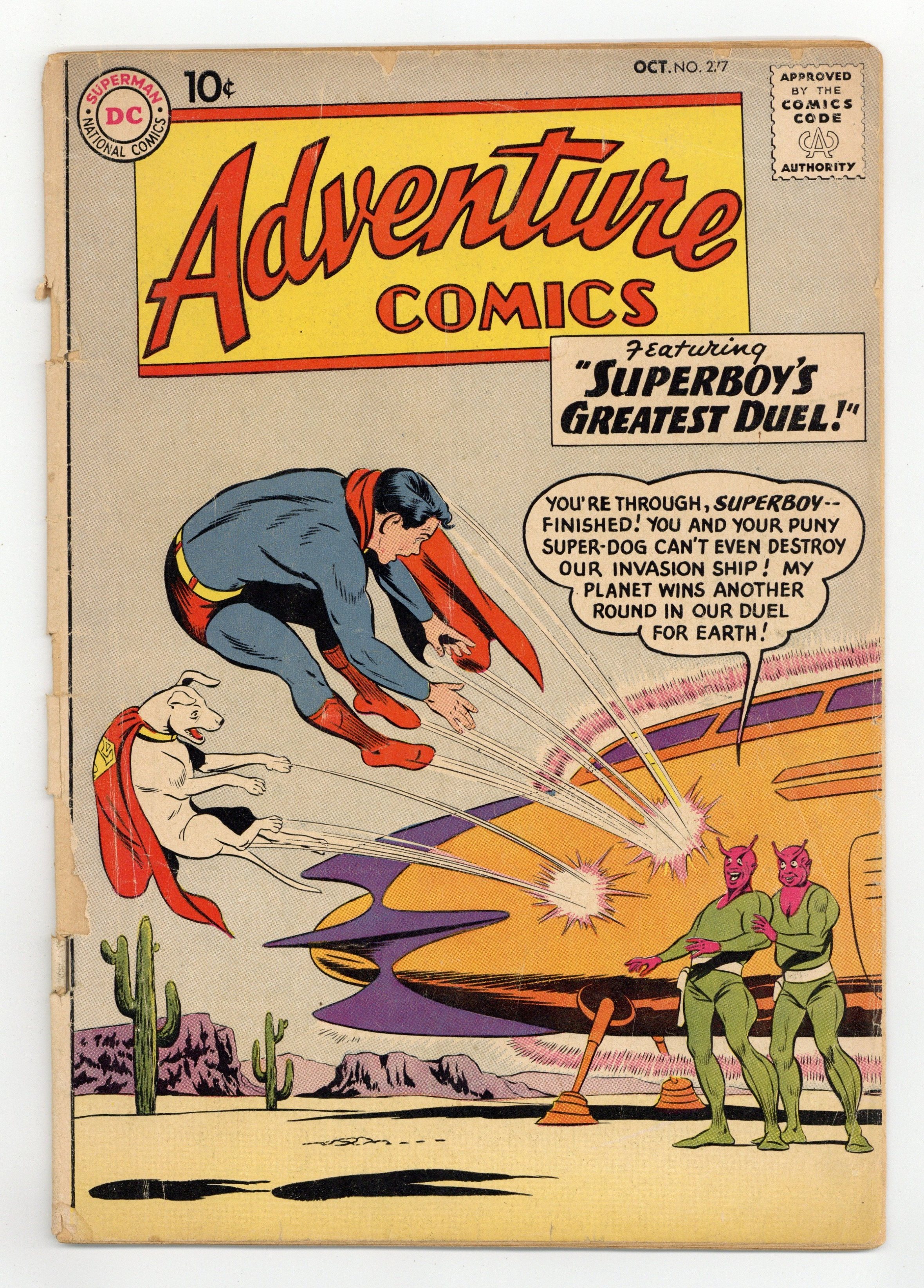 Cover pencils by Curt Swan, inks by Stan Kaye. The Duel for Earth, script by Jerry Siegel, art by George Papp; Superboy has to stop an alien invasion of Earth by agreeing to a duel. Tricksy humor page by Henry Boltinoff. The Underwater Olympics!, script by Robert Bernstein, art by Ramona Fradon; Aquaman and Aqualad hold an underwater Olympics; Aquaman's team "loses" to prevent kryptonite discovery. The Man-Ape's Mercy Mission starring Congorilla, script by Robert Bernstein, art by Howard Sherman. 36 pages, Full Color. Cover price $0.10.