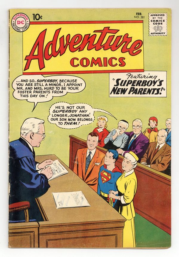 Starts Feb 16 Cover pencils by Curt Swan, inks by Stan Kaye. Superboy's New Parents, script by Robert Bernstein, art by Al Plastino; Superboy gets rid of crooked foster parents. The Lost Magic Ring, script by Robert Bernstein, art by Howard Sherman; Congorilla loses ring while possessing Congo Bill's mind. Moolah the Mystic humor page by Henry Boltinoff. Statement of ownership--average paid circulation 438,000. 36 pages, Full Color. Cover price $0.10.