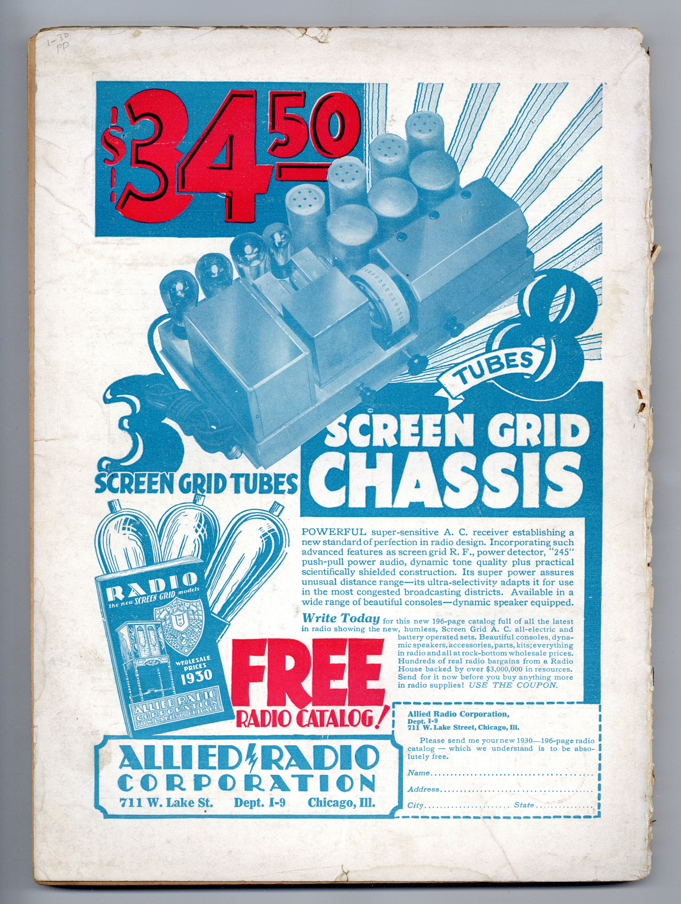 Published Jan 1930 by Stellar Publishing.$9.60- Front cover detached 70%. Back cover detached 80%. Incomplete, See Notes.