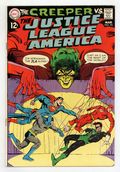 $17.00Cover art by Neal Adams. Versus the Creeper, script by Denny O'Neil, pencils by Dick Dillin, inks by Sid Greene; Batman prompts the League to investigate the new crime fighter, the Creeper; aliens, crooks, the Creeper, and the League battle at a nuclear power plant. Statement of ownerhsip--average print run 537,000; average paid circulation 315,500. 36 pgs. $0.12. Cover price $0.12.