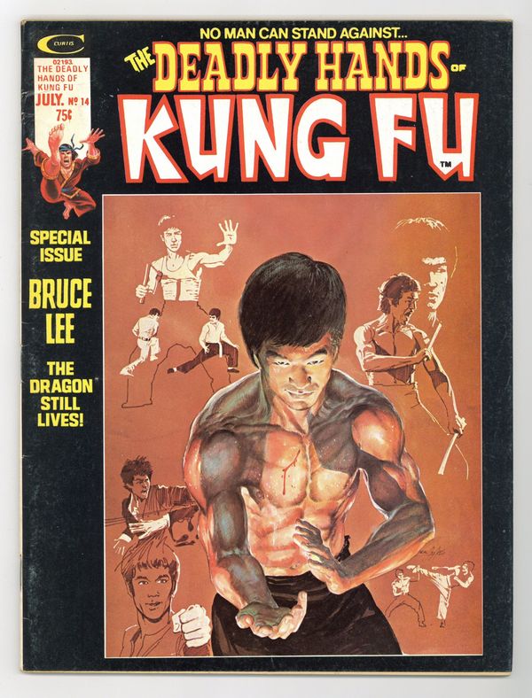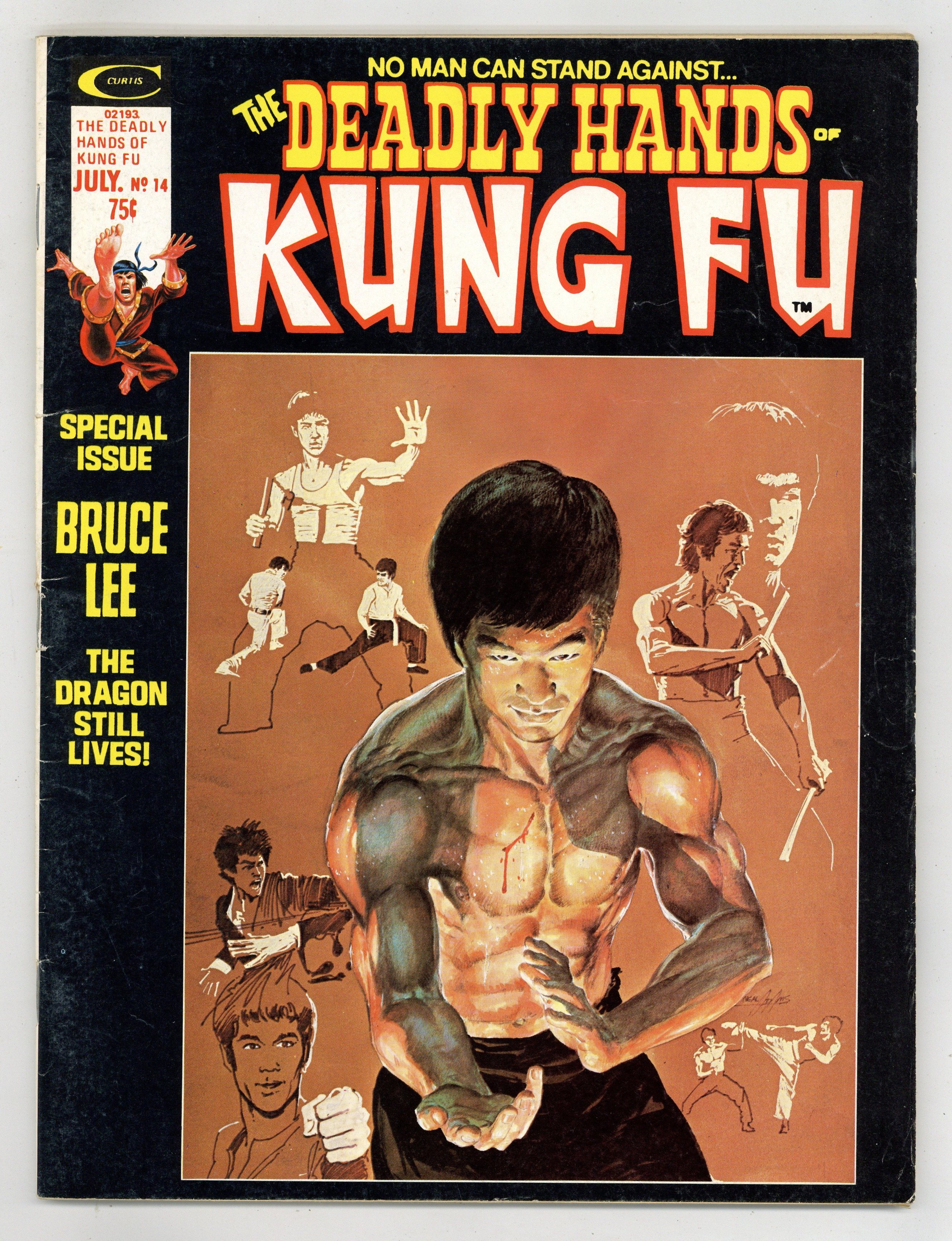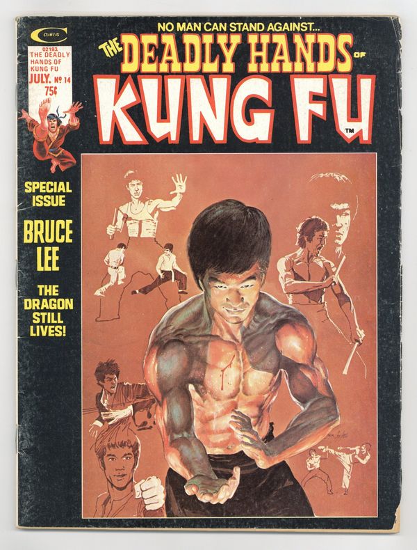 Stan Lee Presents: The Deadly Hands of Kung Fu. Special Bruce Lee issue. Cover by Neal Adams. Includes: "Enter the Letters!" A letters page with readers' thoughts on previous issues. Shang Chi, the Master of Kung Fu, stars in "Thief in Golden Shadows!" Story by Doug Moench. Art by Rudy Nebres. "Bruce Lee Again-For Better or Worse!" An article about the legendary martial artist by Wan Chang O'Shaungnessy. "The Art and Non-Science of Jeet Kune Do!" An article by James Glenn on the martial arts technique developed by Bruce Lee. "The Way of the Weapon!" An article on Bruce Lee's mastery of weapons in martial arts by Thomas Sciacca. Plus, the Sons of the Tiger star in "The Valley of the Ancestors!" Story by Bill Mantlo. Art by George Perez and San Adkins. Includes a B&W poster of Bruce Lee. Black and white. Cover price $0.75.