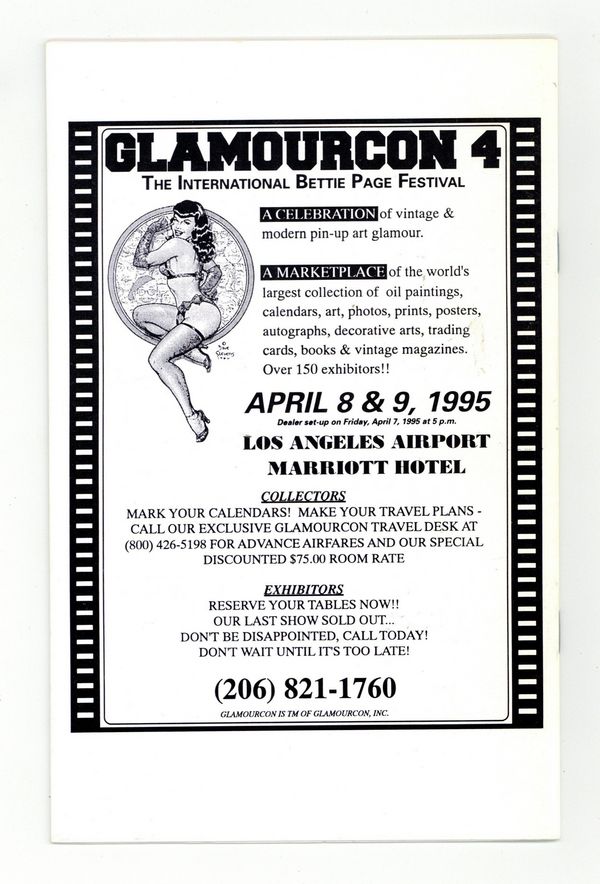 Published 1995 (est.) by Elegant Collectibles.$40.00Newsletter/magazine devoted primarily to Bettie Page featuring articles, drawings and vintage photographs of Bettie Page and others of her 'pin-up' friends. 5 1/2-in. x 8 1/2-in. 24 pages, B&W. Mature Readers. Cover price $5.00.
