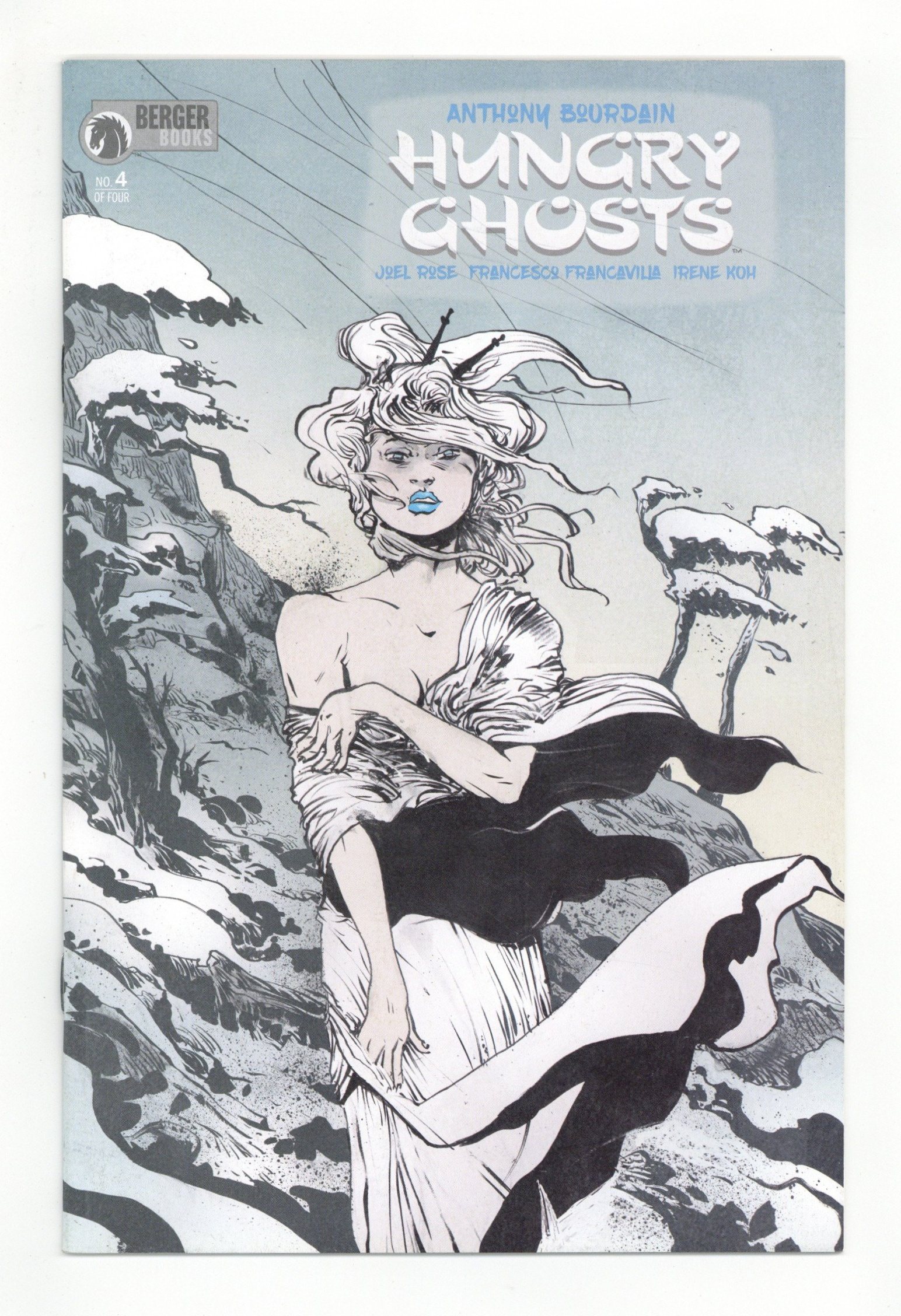 Published Apr 2018 by Dark Horse.$16.00Written by Anthony Bourdain and Joel Rose. Art by Francesco Francavilla and Irene Koh. Cover by Paul Pope. The last candles are lit and the final, most forbidden tales told in this shocking finale! In the frozen Nigata Prefecture, a country cook learns discretion the hard way after an encounter with the cryptic, but irresistible Snow Woman, and Hungry Ghosts seal the insatiable fate of famine-stricken villagers in the most voracious, unthinkable way possible when a stranger comes to town. 28 pages, full color. Mature Readers Cover price $3.99.
