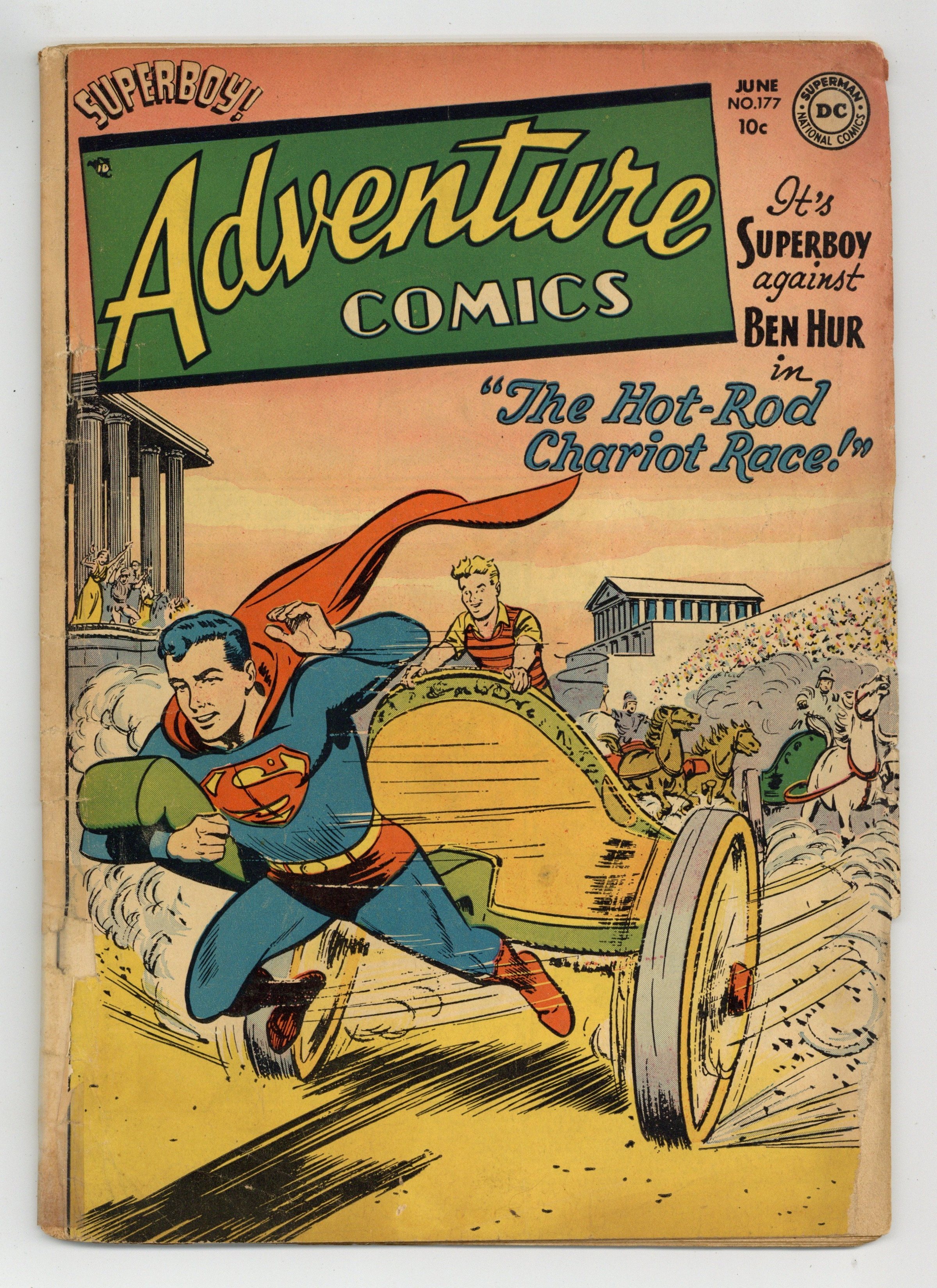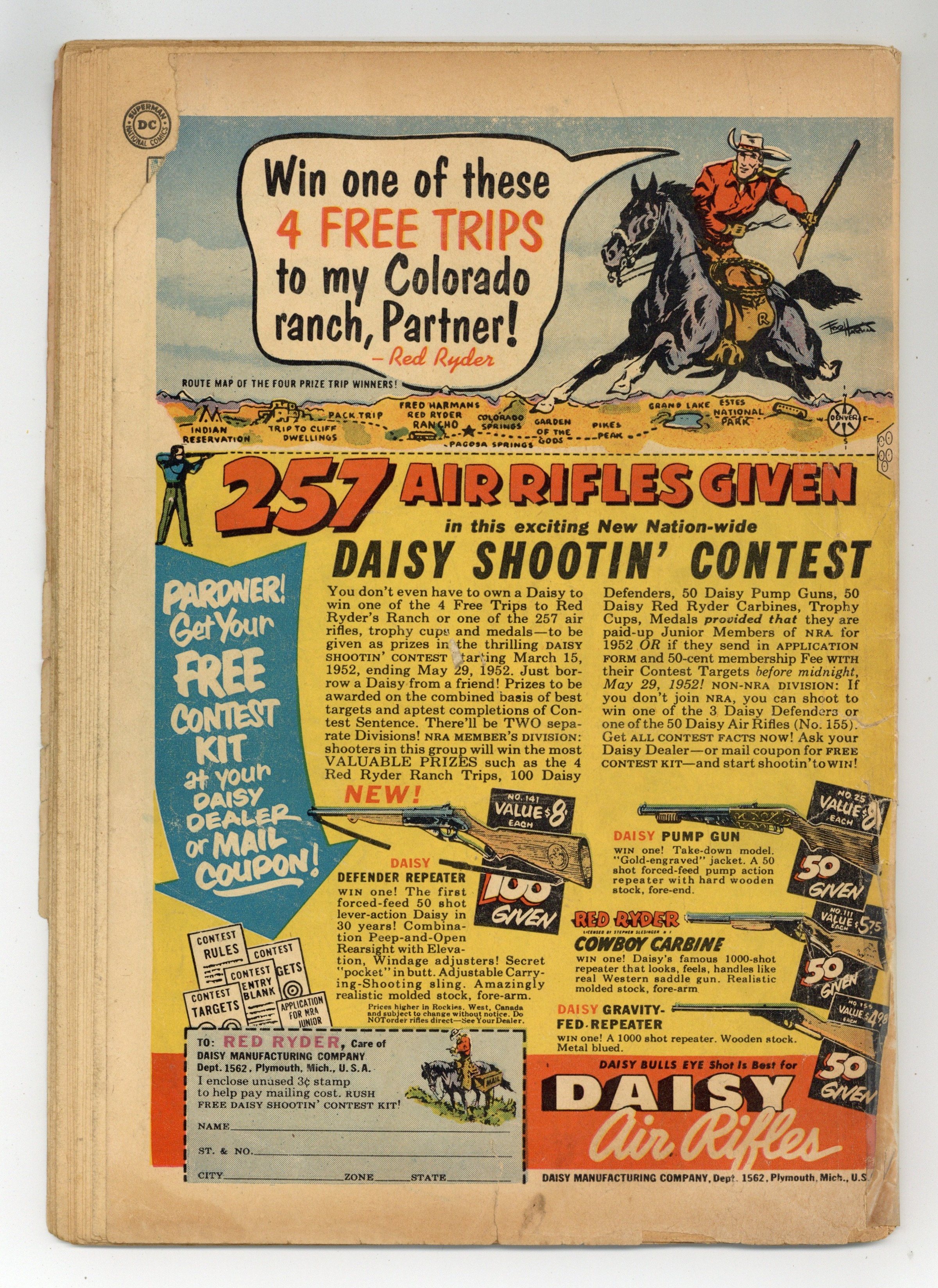 Cover art by Win Mortimer. The Hot-Rod Chariot Race!, art by John Sikela; A professor faces ridicule unless his claim that Ben Hur was a real person is supported; Superboy goes back in time to prove the existence of the fictional character. The Man Who Was Aquaman's Double!, art by Ramona Fradon. Formulas for Space starring Johnny Quick, art by Paul Norris. The Three Champion Archers! starring Green Arrow, art by George Papp. The Disappearing Glass Trick! Activity page. 44 pages, Full Color. Cover price $0.10.
