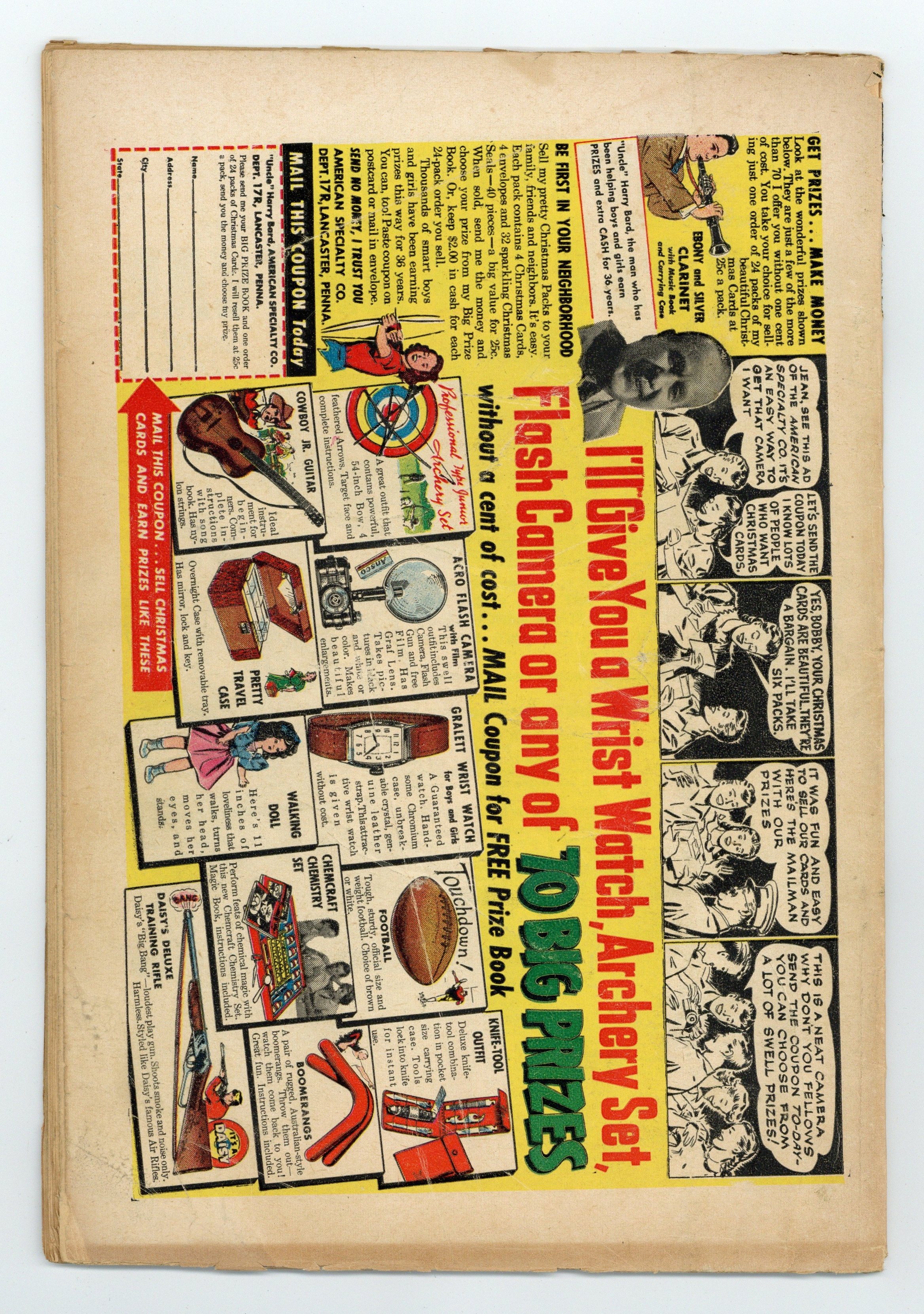 Cover art by Win Mortimer. The Key to Success public service announcement starring Buzzy, script by Jack Schiff, art by Win Mortimer. The Impossible Creatures starring Superboy, script by Otto Binder, art by John Sikela; Superboy must prove strange creatures are genuine. The Haunted Island! starring Aquaman, script by Jack Miller, art by Ramona Fradon. Jerry Jitterbug humor page by Henry Boltinoff. The Kite -- Toy and War Weapon article. The Junior Newsreelers starring Johnny Quick, art by Ralph Mayo. 36 pages, Full Color. Cover price $0.10.