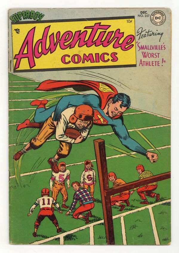 Cover pencils by Curt Swan, inks by Ray Burnley. Smallville's Worst Athlete starring Superboy, art by John Sikela; Timothy Marker wants to play football, but hes an awful athlete. Know Your Country public service announcement starring Superboy, script by Jack Schiff, art by Win Mortimer. The Courtship of Tubby Watts starring Johnny Quick, art by Ralph Mayo. Varsity Vic humor page by Henry Boltinoff. Green Arrow in Wonderoland, art by George Papp. 36 pages, Full Color. Cover price $0.10.