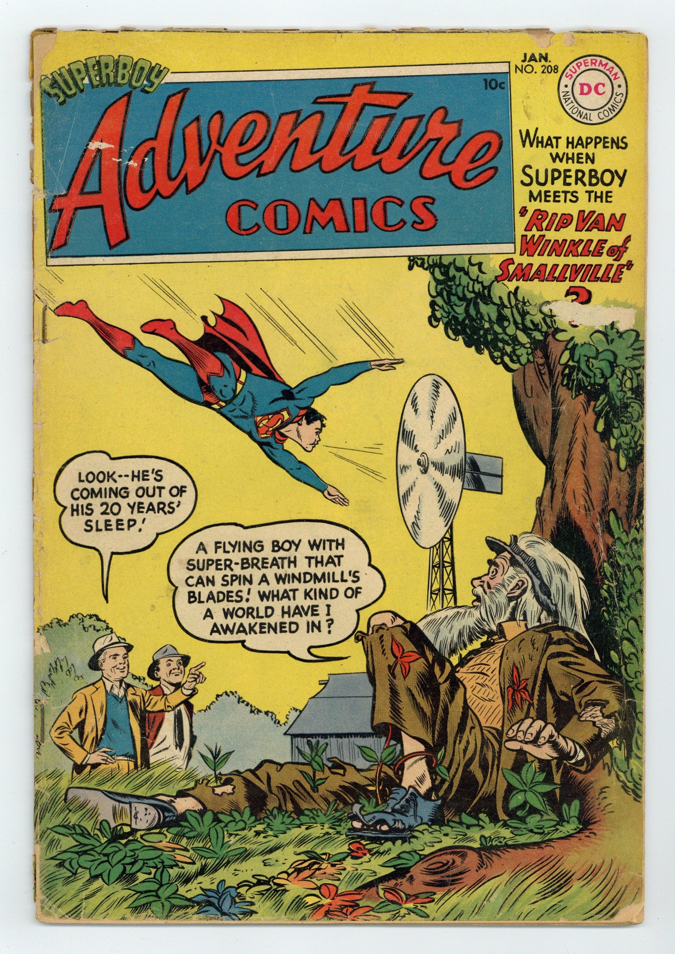 Cover pencils by Curt Swan, inks by Stan Kaye. The Rip Van Winkle of Smallville starring Superboy, script by Edmond Hamilton, pencils by Curt Swan, inks by Bruno Premiani; inventor John Blair has an accident and goes into a coma for 20 years. The Mystery of the Aqua-Dolls starring Aquaman, art by Ramona Fradon. The Incredible Land of Yesteryear starring Green Arrow, art by George Papp. 36 pages, Full Color. Cover price $0.10.