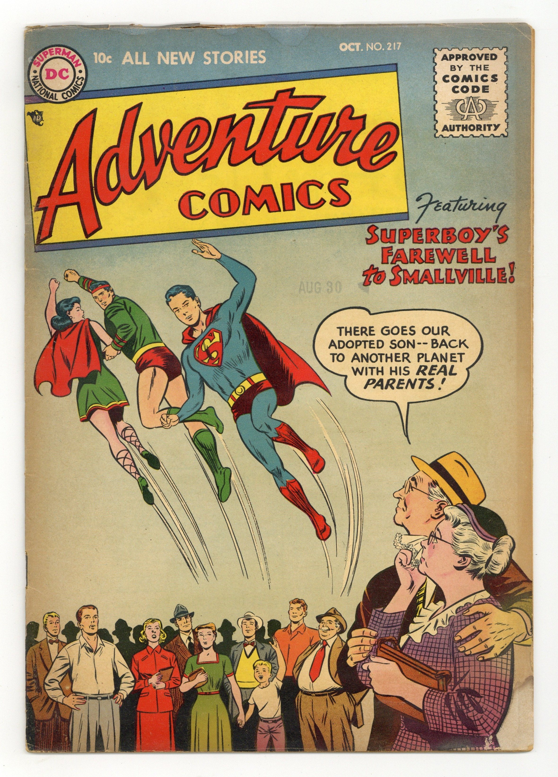 Cover pencils by Curt Swan, inks by Stan Kaye. Superboy's Farewell to Smallville, script by Otto Binder, pencils by Curt Swan, inks by George Klein; Superboy leaves Earth with a couple that claims to be his real parents. The Day Aquaman Couldn't See, art by Ramona Fradon. The Riddle of the Five Trophies starring Green Arrow, art by George Papp. 36 pages, Full Color. Cover price $0.10.