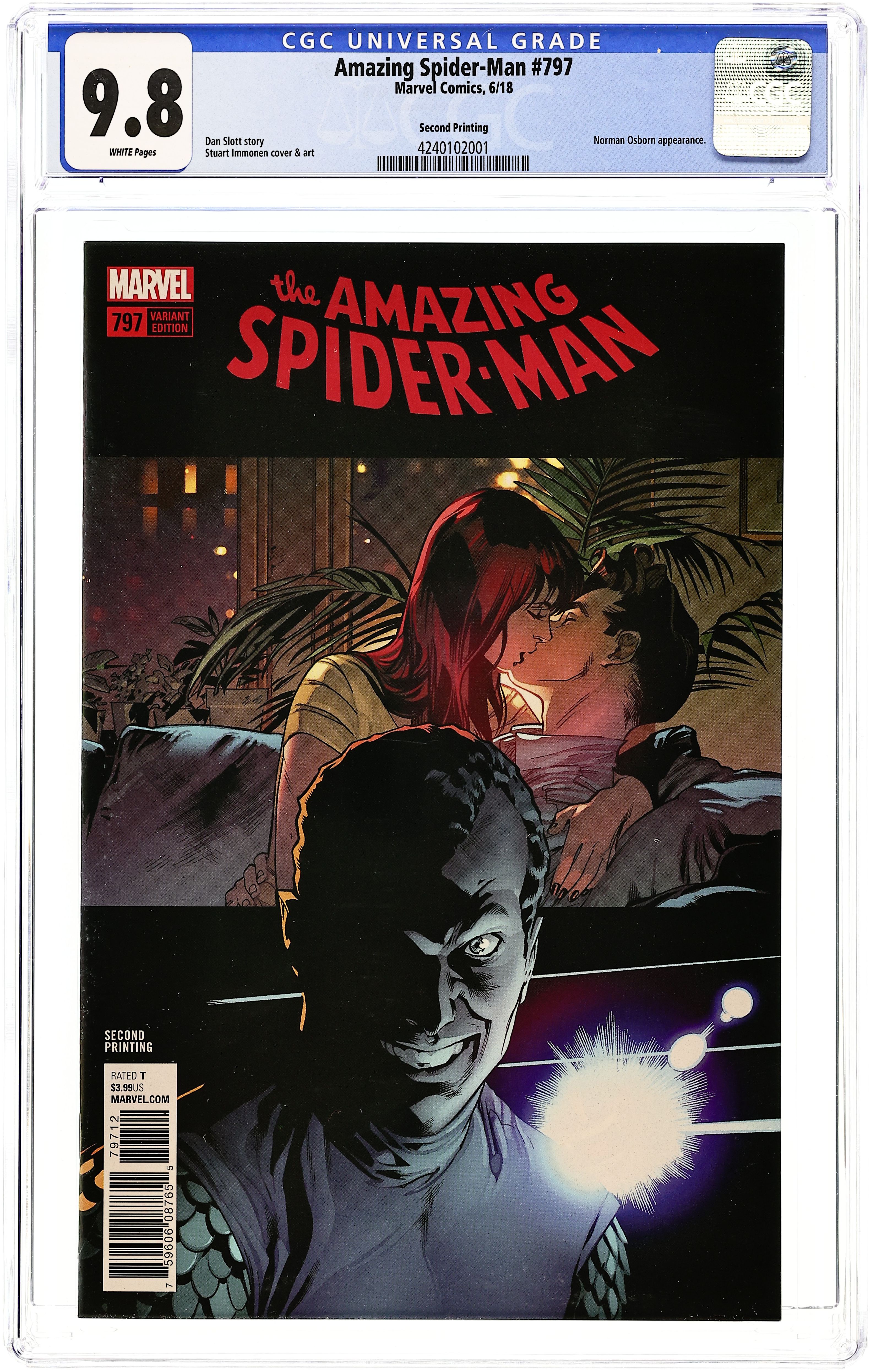 2nd Printing. Go Down Swinging: Part 1 - Written by Dan Slott. Art and Cover by Stuart Immonen. The Green Goblin is back - and scarier than ever! Dan Slott has saved his most harrowing Spider-Man story for last as he and Stuart Immonen kick off the AMAZING SPIDER-MAN story ten years in the making. Osborn got his crazy back and has a plan that'll make all his past plans look like child's play. Peter Parker and the people he loves (ALL of them) are in deep trouble. And who or what is the RED GOBLIN?! The only way Spider-Man survives is to GO DOWN SWINGING! 28 pages, full color. Rated T Cover price $3.99.