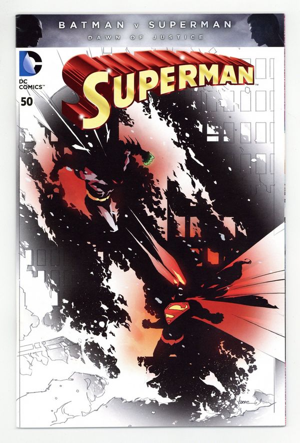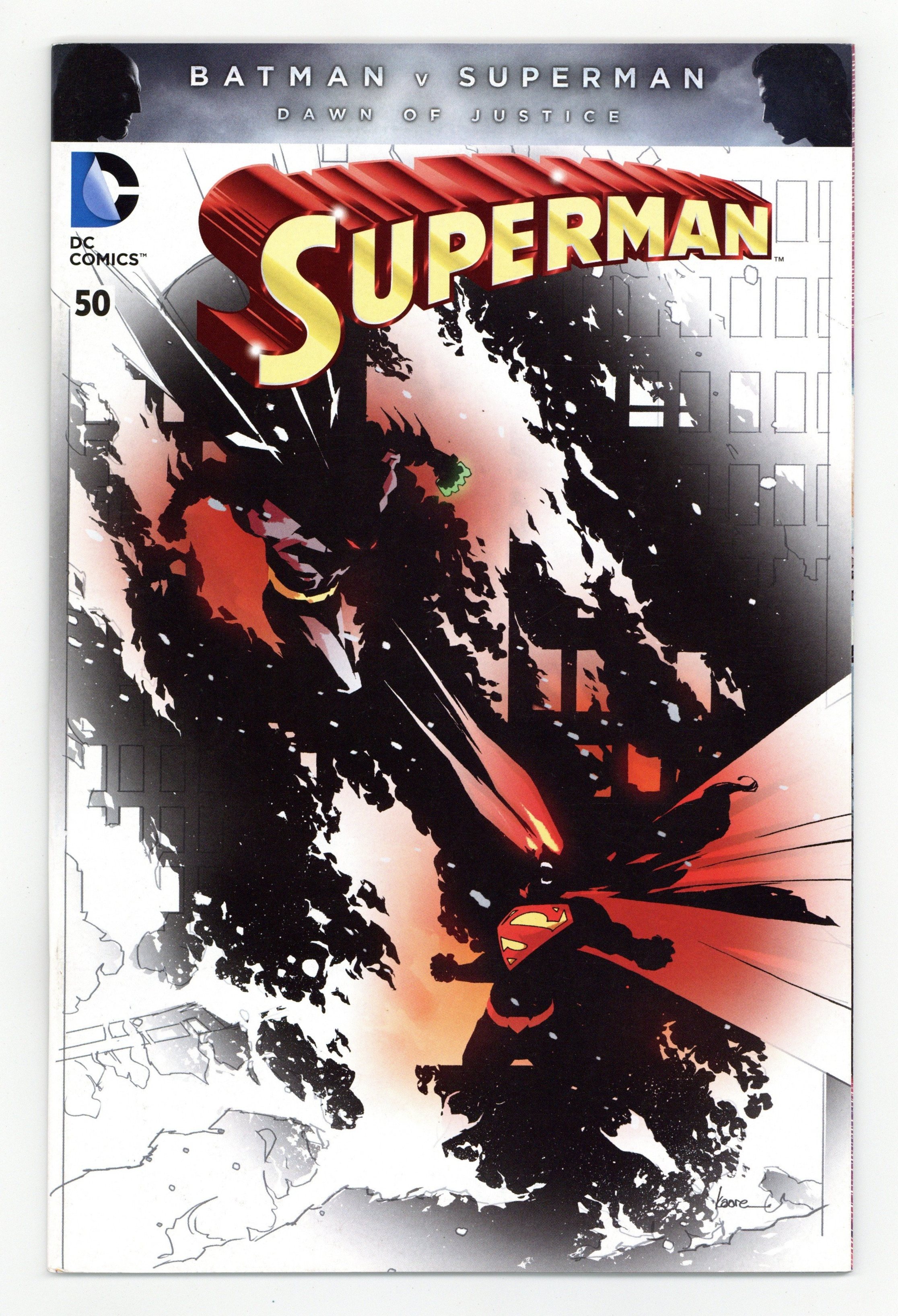 Half Sketched Variant Cover by Kaare Andrews. Blind Justice/Savage Dawn: Part 14 - Written by Gene Luen Yang. Art by Howard Porter, Patrick Zircher and Ardian Syaf, plus a special page by classic Man of Steel artist Jon Bogdanove. Superman returns in all his glory in this very special issue that sees the Man of Steel back to full power as he faces his greatest enemy and also comes face to face with the pre-Flashpoint Kal-El! At last, it's the meeting of the Supermen you've been waiting for! 48 pages, full color. Rated T Cover price $4.99.