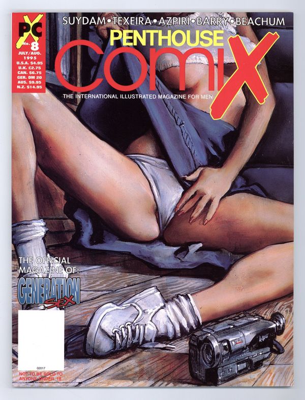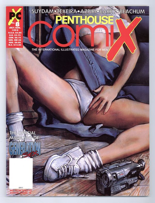 Published Jul 1995 by Penthouse International, LTD..$23.00July/August 1995. Bethlehem Steele, Part 7; Sweet Torture; Doctor Dare Space: 1939, Part 1; Rocket Men; Backlash, Part 7; Heroine; Scion, Part 7; The Truth; Young Captain Adventure; Libby in the Lost World; Mudwog II; Generation Sex. Written by George Caragonne, Tom Thornton, and Arthur Suydam. Art by Alfonso Azpiri, Dan Barry, Mark Beachum, Steve Geiger, Arthur Suydam, Joel Adams, Mark Texeira. 8-in. x 10 1/2-in. 96 pages, full color. Mature Readers. Cover price $4.95.