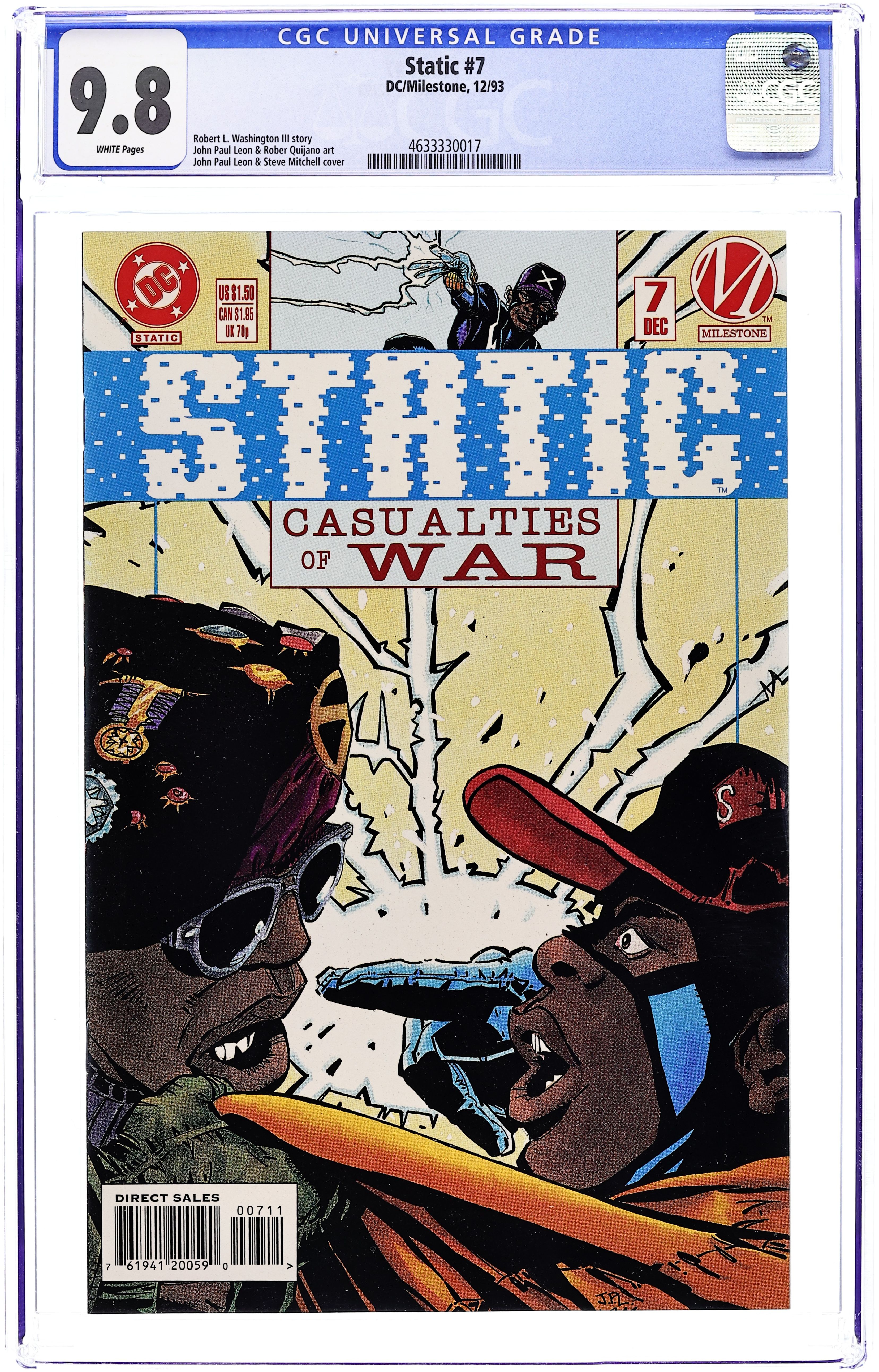 Part 3 of 3. Virgil and Frieda must reconcile their differences in order to hatch an ingenious plan to stop Commando X before he can carry out his next explosive scheme. This issue leads into SHADOW WAR, the first Milestone crossover event. Written by Robert L. Washington III, with art by John Paul Leon and Rober Quijano. Cover price $1.50.