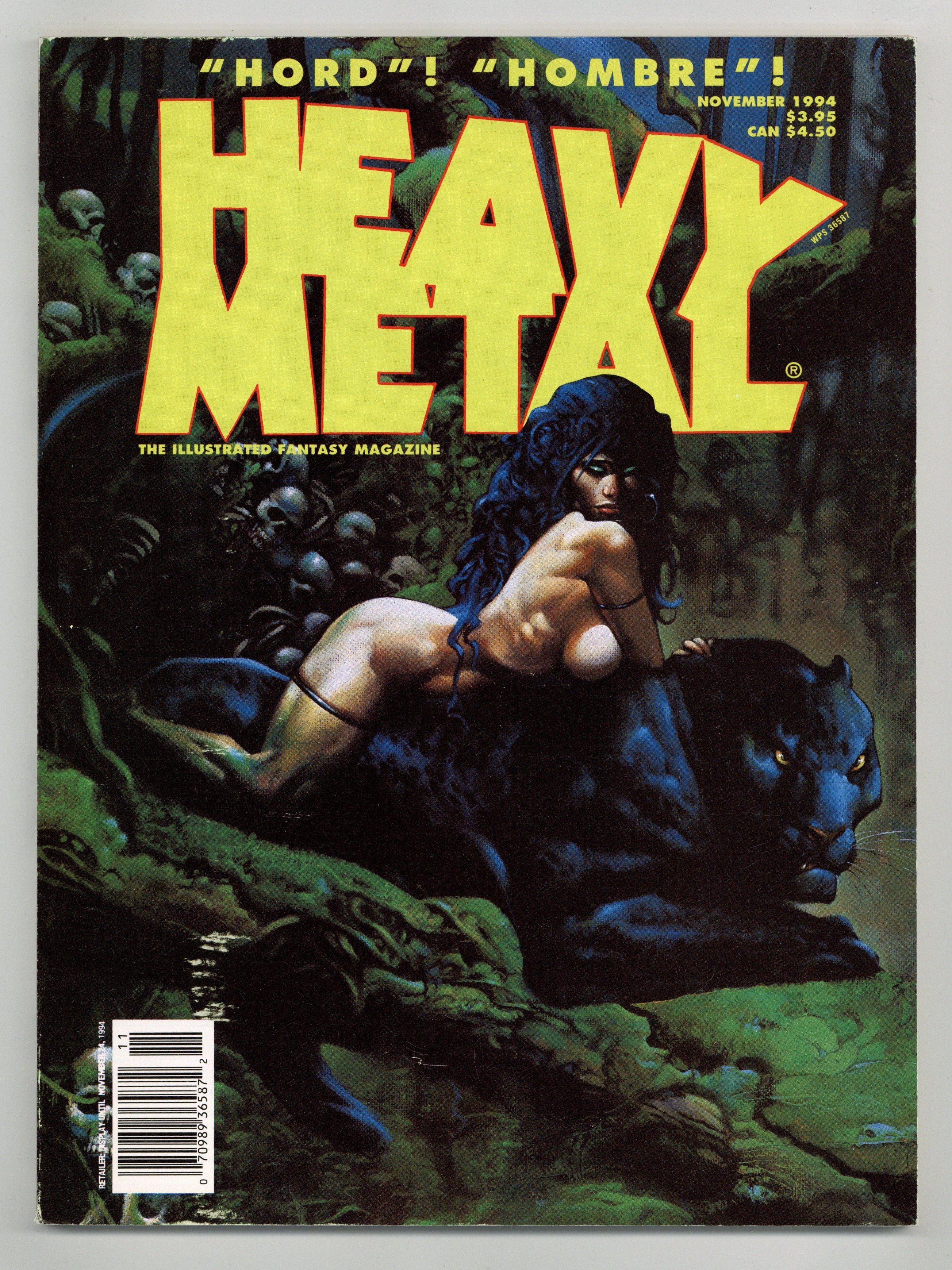 Published Nov 1994 by HM Communications.$12.00The adult illustrated fantasy magazine. Cover art by Simon Bisley. Erez Yakin: The Silent City gallery. Kingdom of the Wicked, script by Ian Edginton, art by Matt Brooker. Hord, script by Jean David Morvan, art by Jab Jab Whamo. King of the Dogs starring Hombre, script by Antonio Segura, art by Jose Ortiz. Bug Hunt, script by Ian Edginton, art by Dean Ormston. Striptease: Luck of the Irish starring Carl LaFong Detective for Hire, script and art by Mark Landman. Striptease: The Mystery of the Missing Body--Bison Bill's Weird West Show, script and art by Mack White. Thanks, Mr. Nuys, script and art by Piero. Various StripTease stories. Nov, 1994, issue 153. Cover price $3.95.