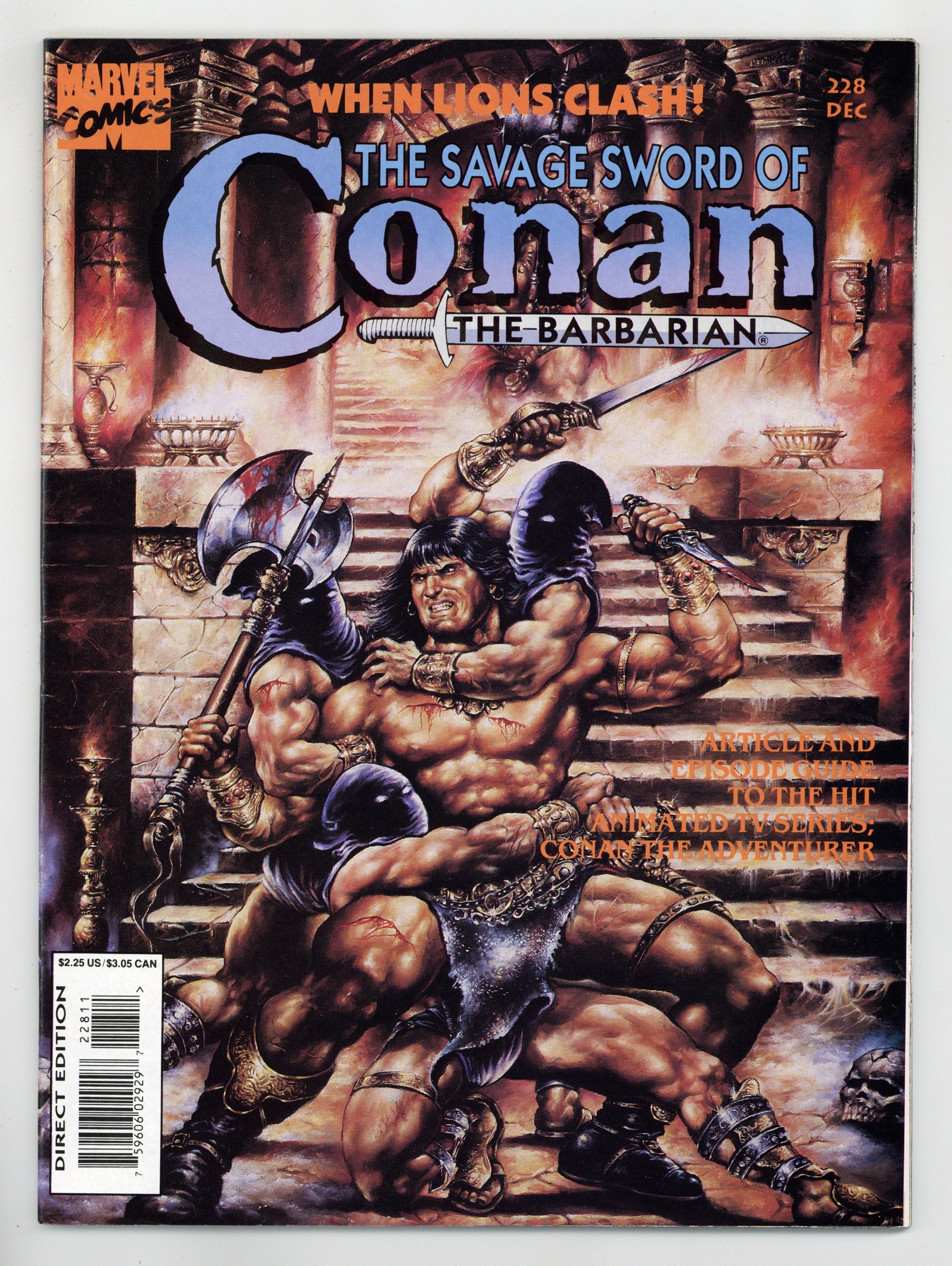$26.50Conan stars in "The Lions of Corinthia." Script by Roy Thomas, art by Alex Nino. Partly adapted from "The Lion of Tiberias" by Robert E. Howard. "The Road to Shondakar." Poem by Thomas, full-page illustrations by Pablo Marcos. "Conan Comes Alive" by Josh Cohen, a Conan cartoon episode guide (part 1). Seven Ernie Chan pin-ups. Michael Leo Lieberman cover. Cover price $2.25.