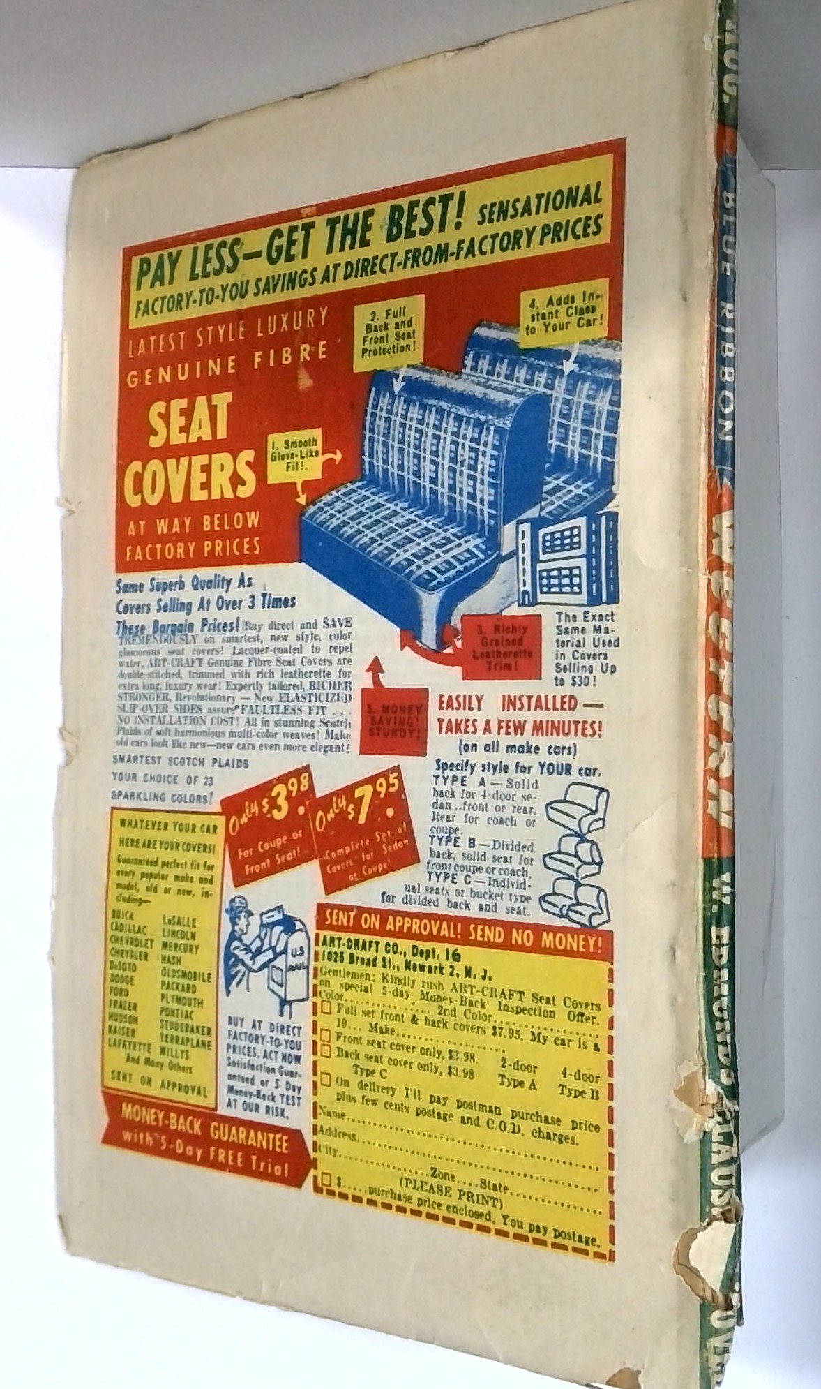 - Back cover detached 50%. Water damage: Slight. Staple rust: Slight.