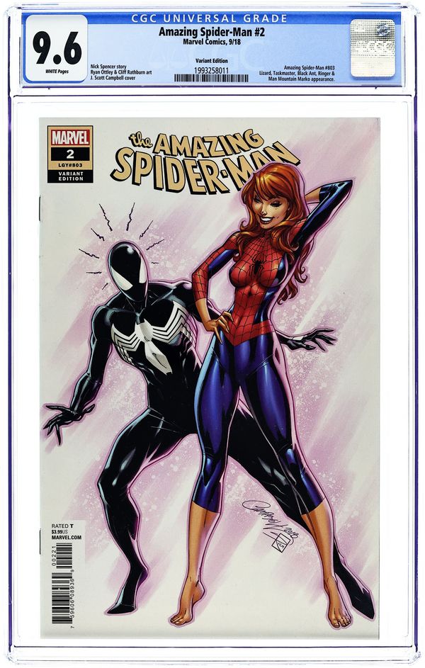 Limited 1 for 25 Retailer Incentive Variant Cover. Written by Nick Spencer. Art by Ryan Ottley. Cover by J. Scott Campbell. An alien invasion hits New York City and the only one who can stop it is…Spider-Man?! But that's far from all you'll find here - a revelation from the past puts Peter Parker's job, relationships, and whole life in jeopardy! And if even that's not enough, you'll see a new roommate, new love interests - and a new villain! Spider-Man goes back to basics courtesy of Nick Spencer (SECRET EMPIRE, SUPERIOR FOES OF SPIDER-MAN) and the Marvel debut of RYAN OTTLEY (Invincible)! 28 pages, full color. Rated T Cover price $3.99.