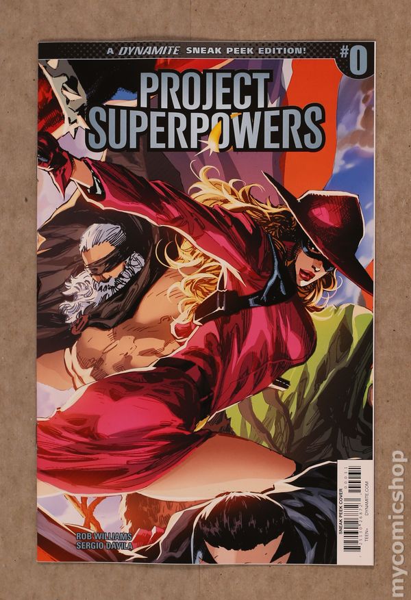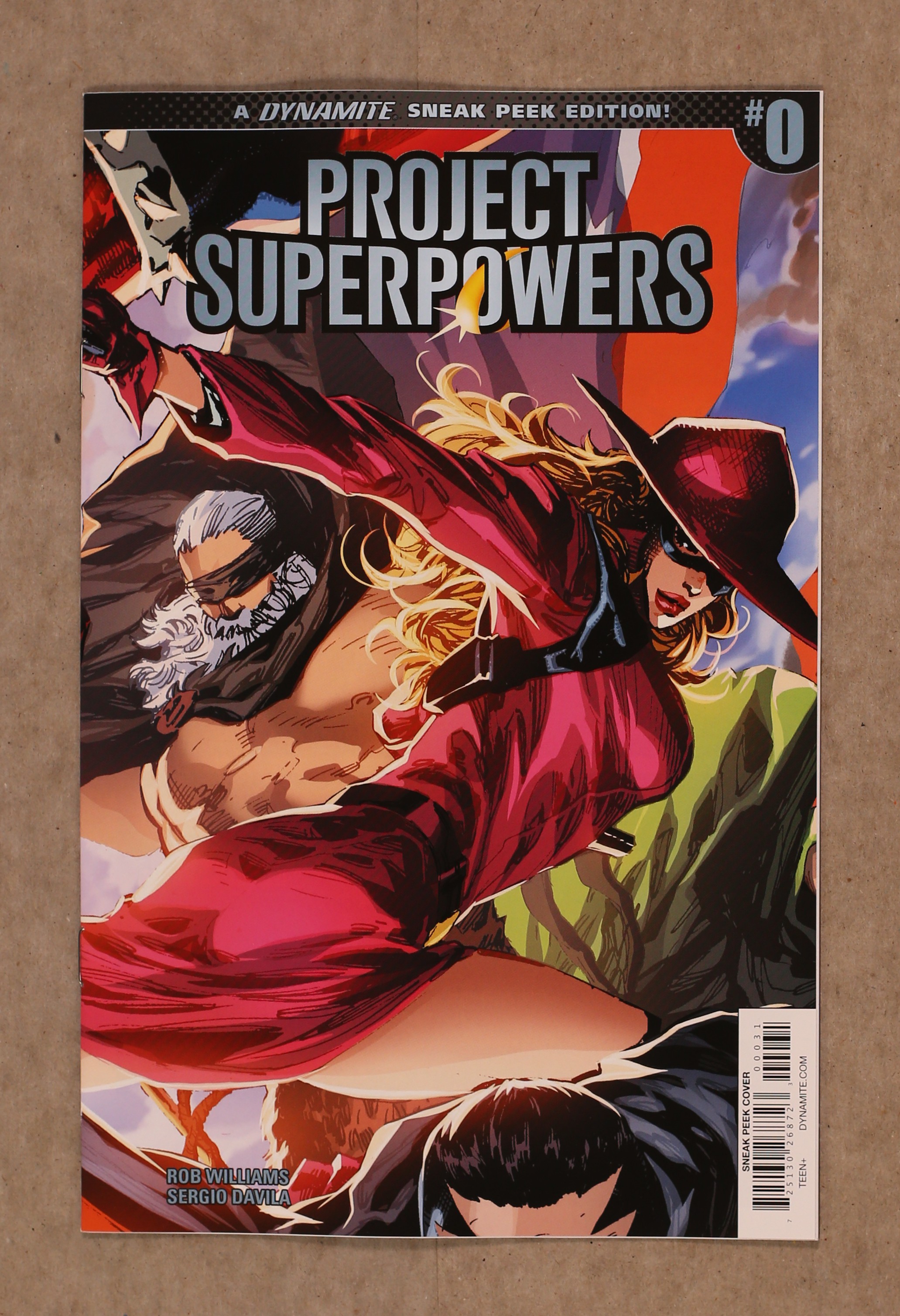 Published Jul 2018 by Dynamite Entertainment.$5.00Limited 1 for 20 Retailer Incentive Variant Cover. Written by Rob Williams. Art by Sergio Davila. Cover by Philip Tan. Superpowers #0: Project Superpowers is Back! Written by Rob (Suicide Squad) Williams, illustrated by Sergio (Swords of Sorrow, Superman) Davila, and featuring an all-star roster of cover artists, this introductory priced issue is the perfect starting point for the most ambitious superhero story of 2018. An all-new threat faces the Earth, while the team faces turmoil from within and must overcome all obstacles to prove their worth and value in a world that desperately needs its heroes. The Death Defying Devil, Samson, Black Terror, Masquerade, Green Lama, Scarab and more are all here as the adventure begins again. Featuring an introductory story leading right into the all-new #1 next month, Project Superpowers #0 is action-packed and introductory priced. Includes bonus materials and 16 pages of original story. 32 pages, full color. Rated T+