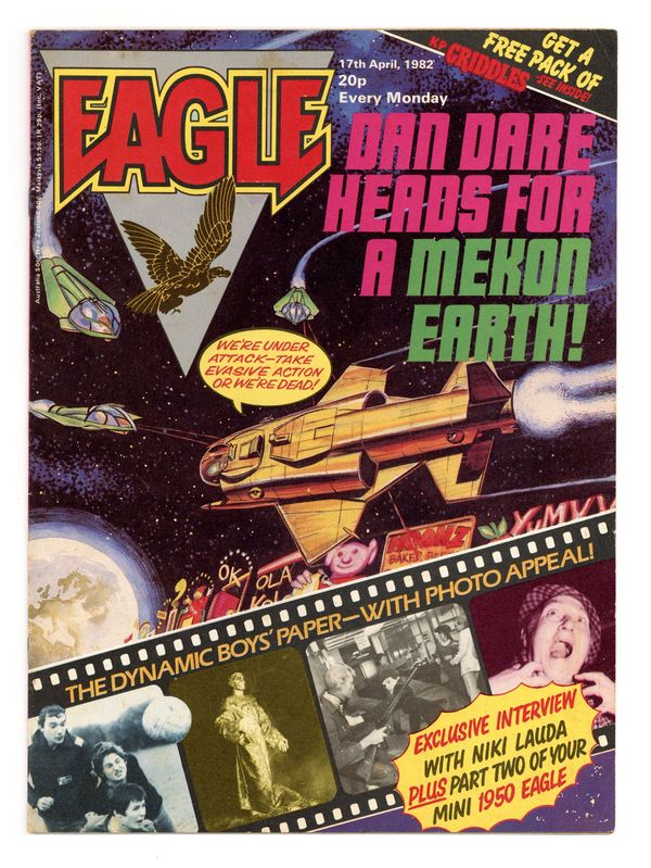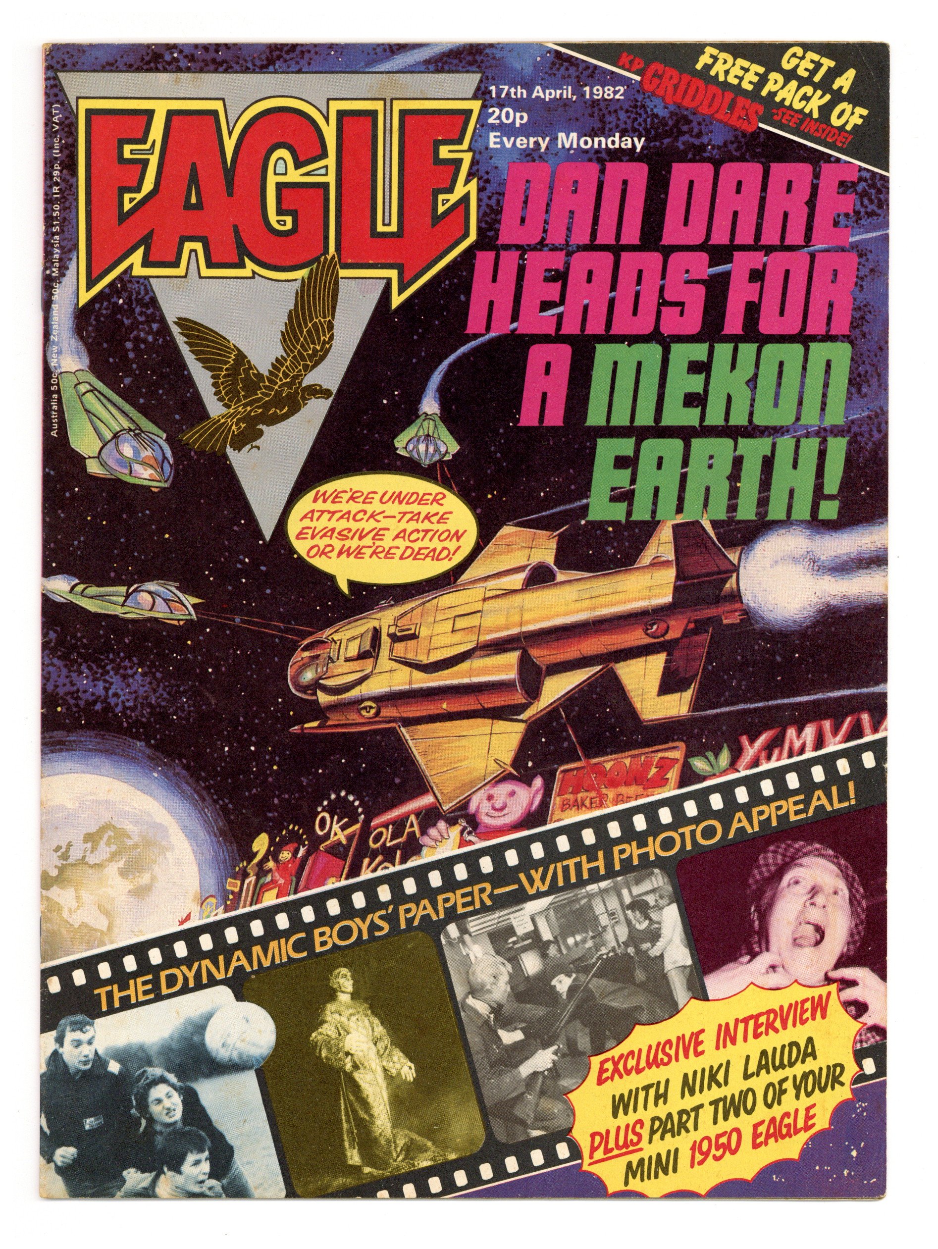 Issue #4 - Apr. 17, 1982. Dan Dare by John Wagner and Gerry Embleton, The Tower King by Alan Hebdon and Juan Ortiz. Plus fumetti and text articles. 8 1/2-in. x 11 1/2-in., 30 pages, B&W and color.