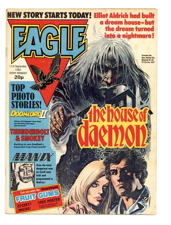 Issue #25 - Sept. 11, 1982. Dan Dare by Pat Mills, John Wagner and Ian Kennedy, The House of Daemon by Alan Hebdon and Jose Ortiz. Plus fumetti and text articles. 8 1/2-in. x 11 1/2-in., 30 pages, B&W and color.