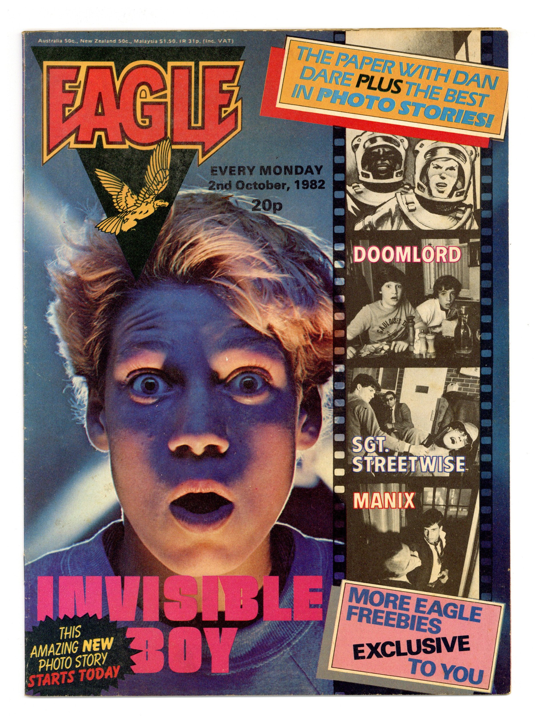 Issue #28 - Oct. 2, 1982. Dan Dare by Pat Mills, John Wagner and Ian Kennedy, The Tower King by Alan Hebdon and Jose Ortiz. Plus fumetti and text articles. 8 1/2-in. x 11 1/2-in., 30 pages, B&W and color.