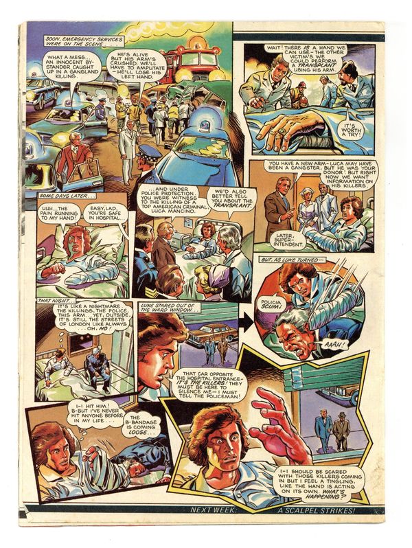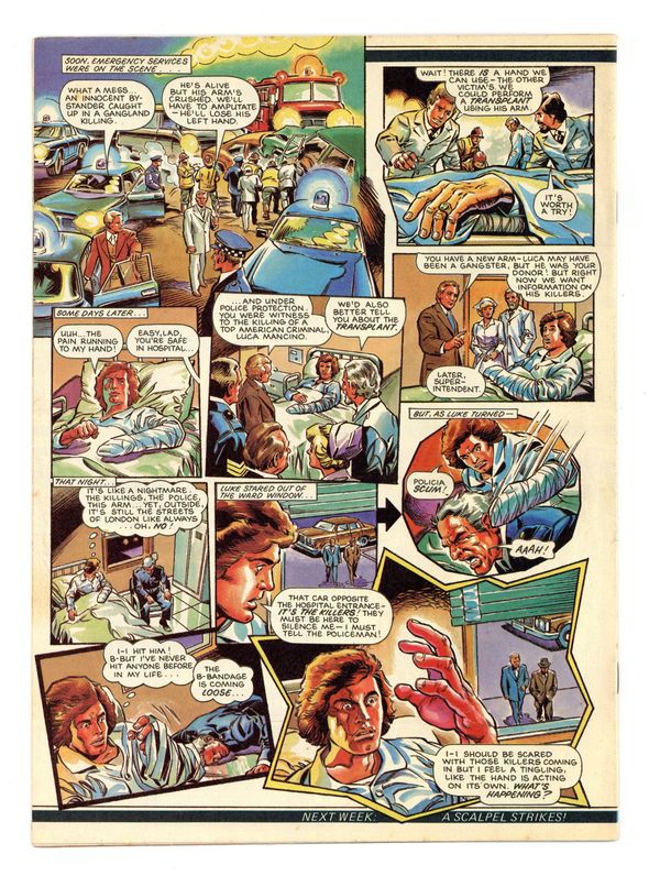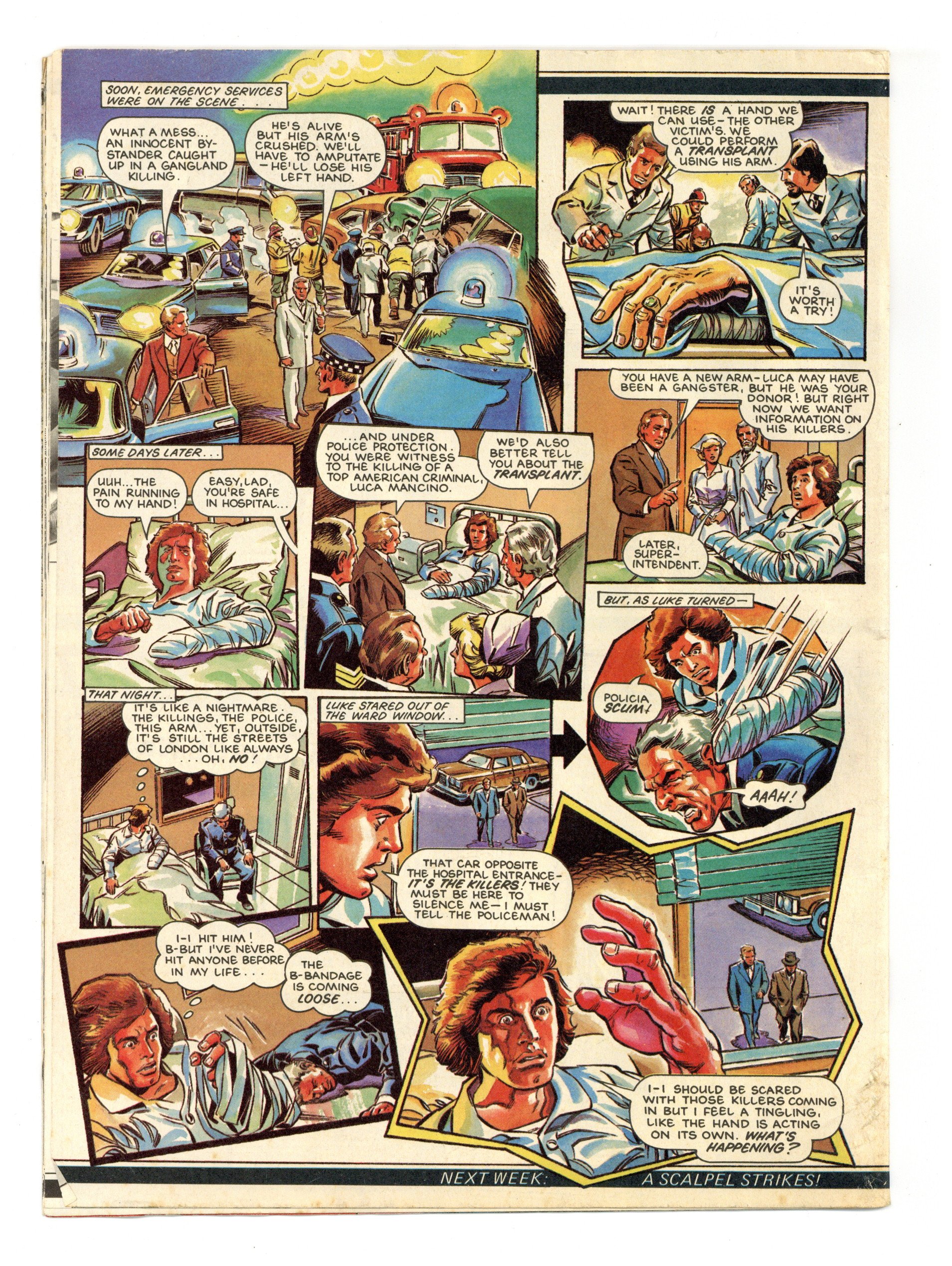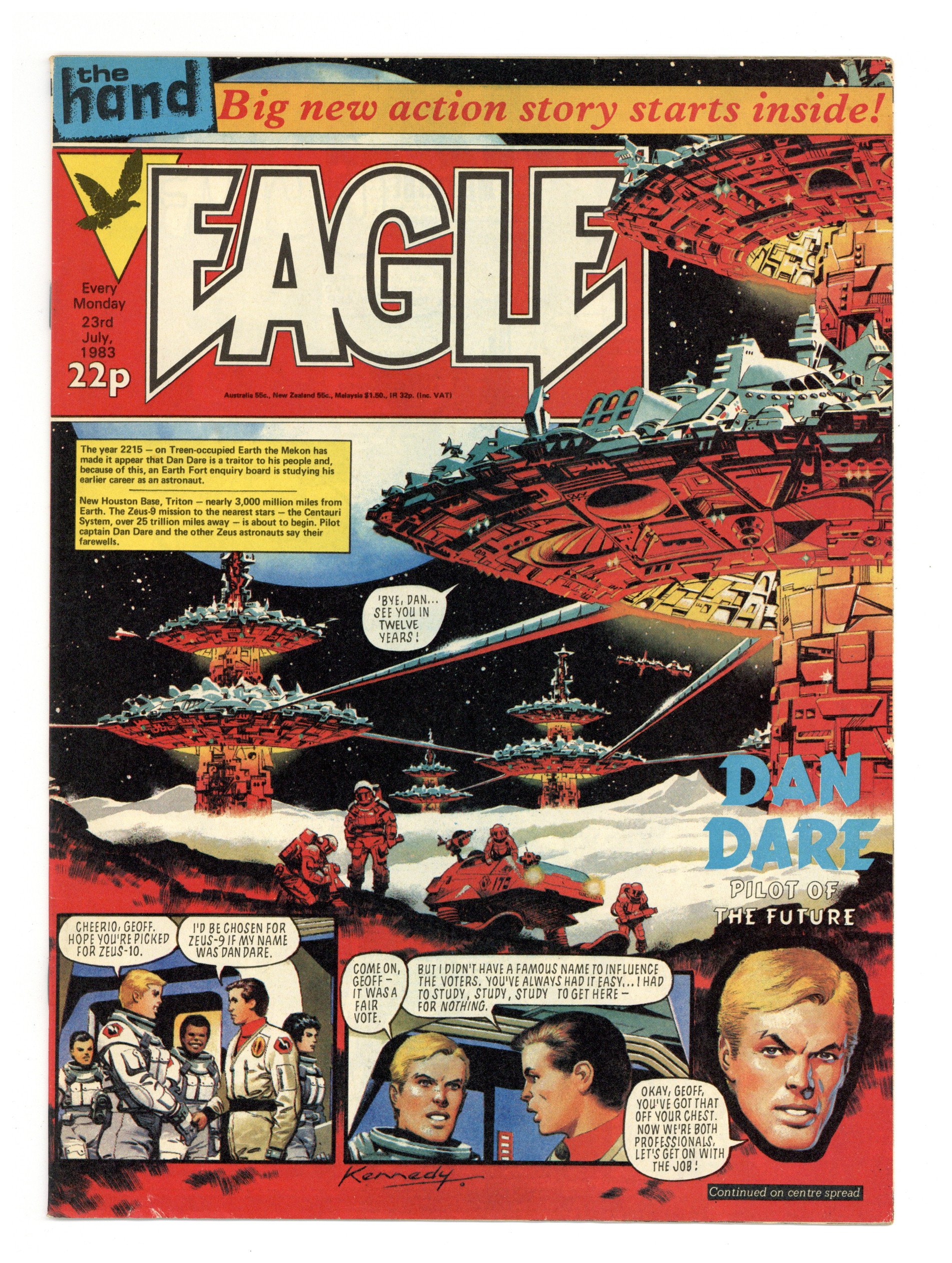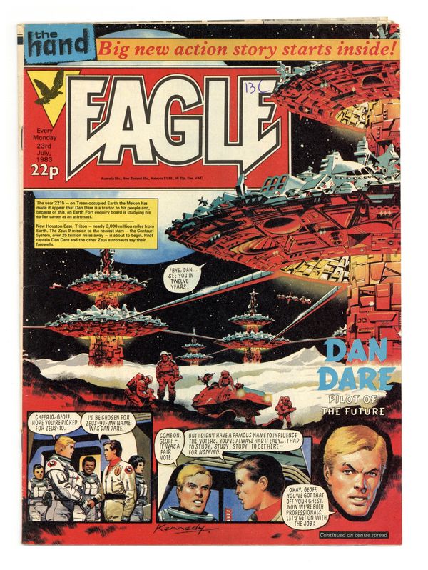 Issue #70 - July 23, 1983. Dan Dare by Pat Mills and Ian Kennedy, The Hand by Gerry Finlay and Vanyo, Crowe Street Comp by Fred Baker and Rex Archer, One-Eyed Jack. Plus fumetti and text articles. 8 1/2-in. x 11 1/2-in., 30 pages, B&W and color.