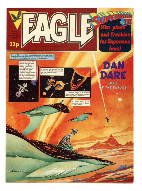 Issue #72 - Aug. 6, 1983. Dan Dare by Pat Mills and Ian Kennedy, The Hand by Gerry Finlay and Vanyo, Crowe Street Comp by Fred Baker and Rex Archer, One-Eyed Jack. Plus fumetti and text articles. 8 1/2-in. x 11 1/2-in., 30 pages, B&W and color.