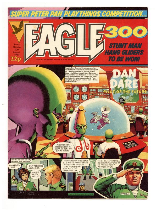 Issue #74 - Aug. 20, 1983. Dan Dare by Pat Mills and Ian Kennedy, The Hand by Gerry Finlay and Vanyo, Crowe Street Comp by Fred Baker and Rex Archer, One-Eyed Jack. Plus fumetti and text articles. 8 1/2-in. x 11 1/2-in., 30 pages, B&W and color.