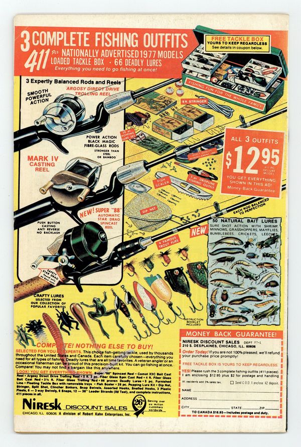 $55.00UK edition. Identical to US edition, but has 12p cover price. "The Russians Are Coming!" Written by Jack Kirby. Pencils by Jack Kirby. Inks by Mike Royer. The U.S.S.R., frightened by the sudden appearance of the space gods, launches an all-out nuclear assault. Their attack on the space god was natural! The result was horribly unnatural. Notes: Letter to the editor from comics writer Mike Barr. First appearance of Aginar, the Delphan Brothers, Druig, Kingo Sunen, Valkin, and Zarin.