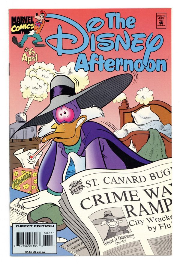 $15.00Based on the animated TV adventures! Darkwing Duck takes to the midnight skies! This issue also features other Disney Afternoon favorites. Written by Jerry Novick, Janet Gilbert and Russ Miller. Pencils by Andres Klacik, Bill White and Rick Stasi. Cover price $1.50.