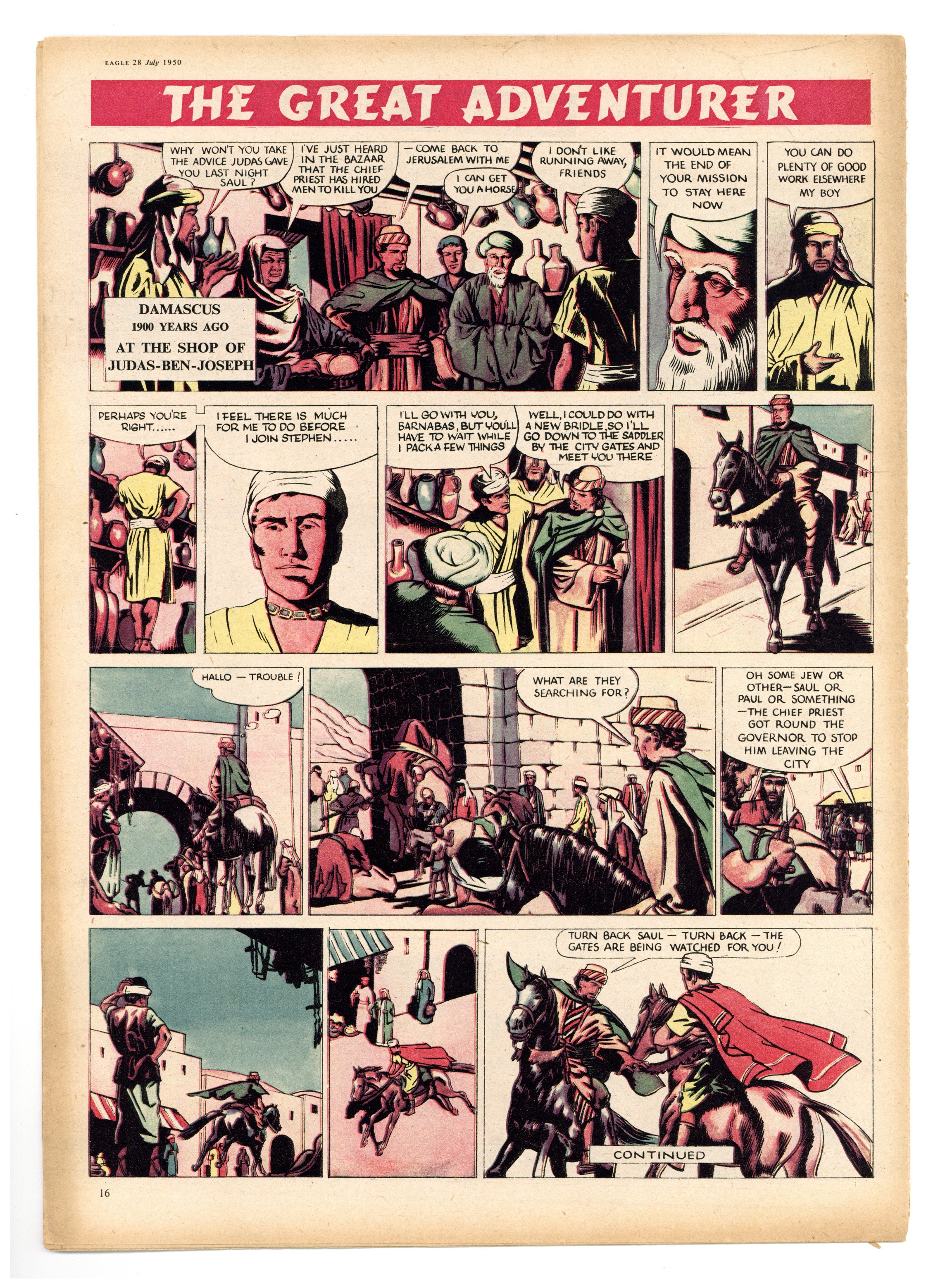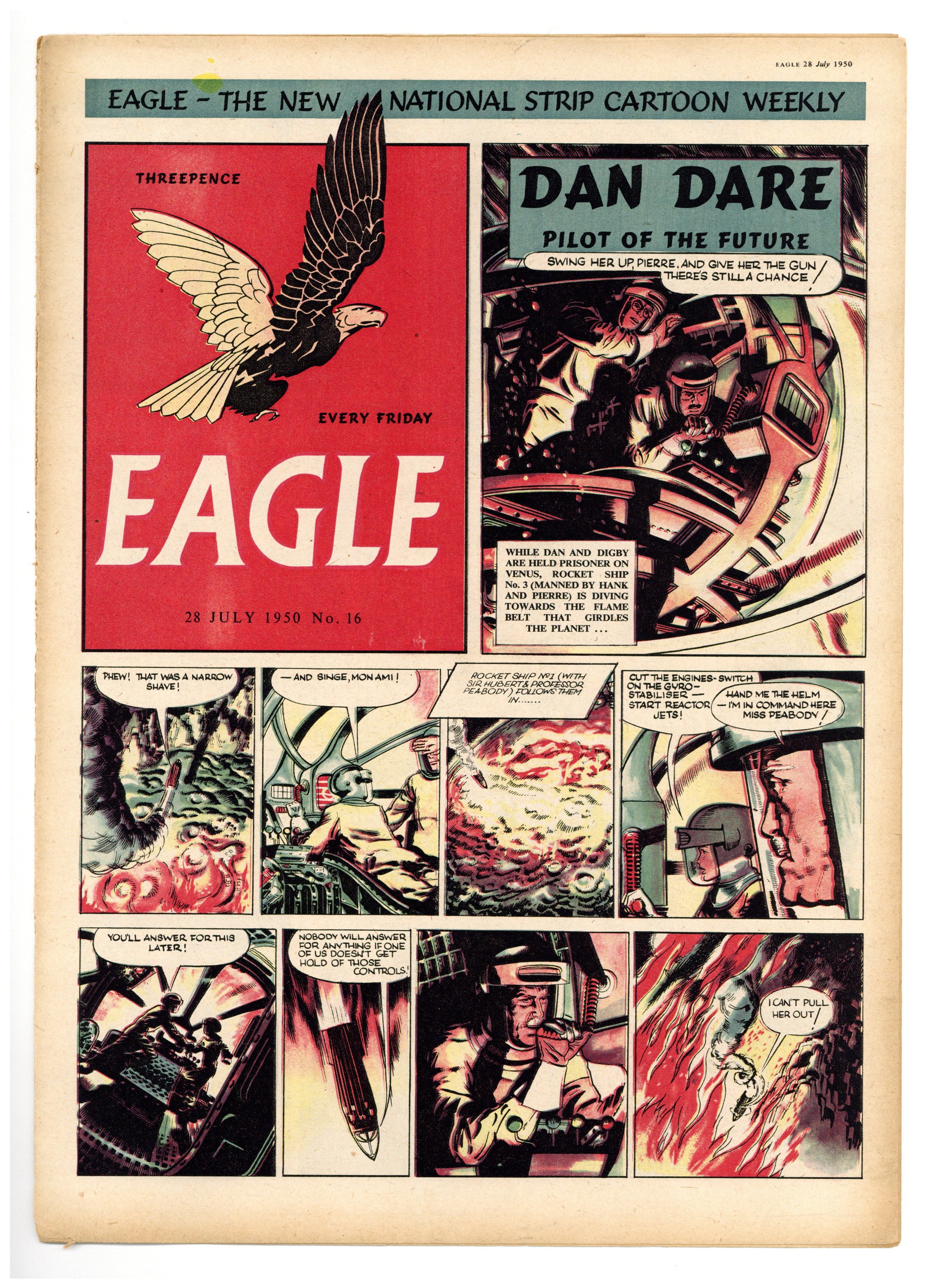 Vol. 1 #16 - July 28, 1950. Contents include Dan Dare, P.C. 49, Seth and Shorty - C6wboys, Eagle Cutaway centerfold, Skippy the Kangaroo, Real Life Mysteries, Discovering the Countryside, Harris Tweed Extra Special Agent, The Great Adventurer. Plus text stories and articles. 10 1/2-in. x 14 1/2-in., 14 pages, B&W and full color.