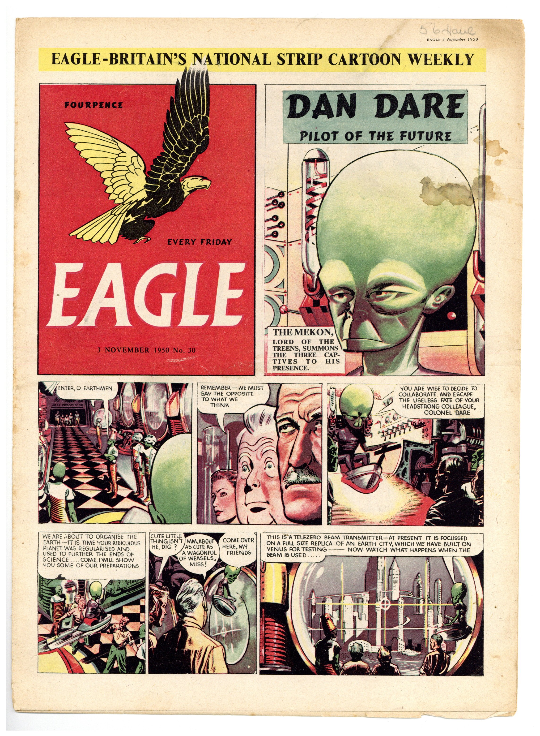 Vol. 1 #30 - Nov. 3, 1950. Contents include Dan Dare, P.C. 49, Cortez, Conqueror of Mexico, Eagle Cutaway centerfold, Skippy the Kangaroo, Fireworks from B.C. to Brock, Real Life Mysteries, Harris Tweed Extra Special Agent, The Great Adventurer. Plus text stories and articles. 10 1/2-in. x 14 1/2-in., 14 pages, B&W and full color.