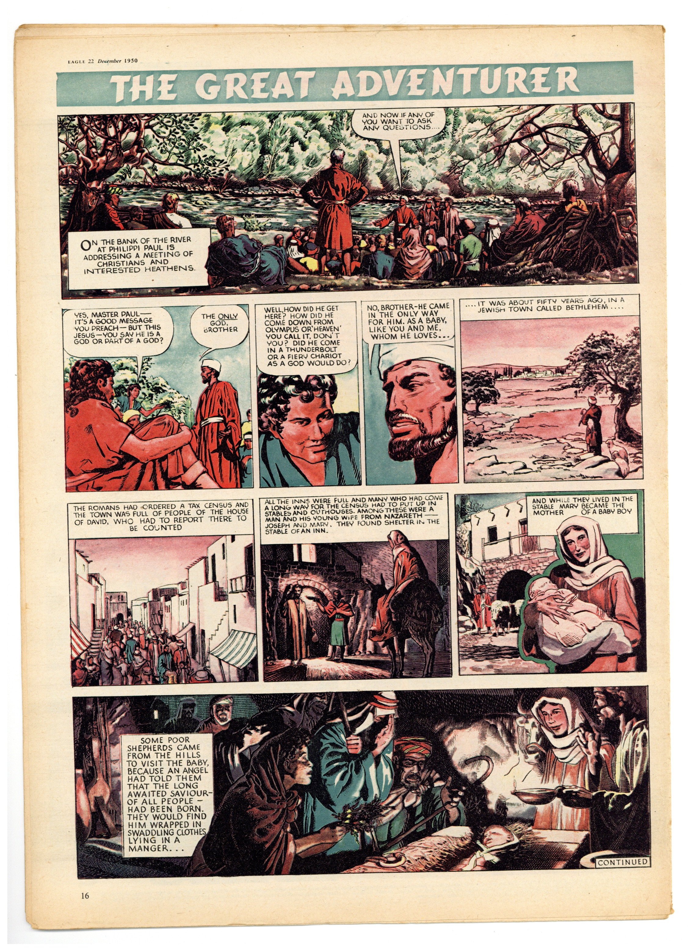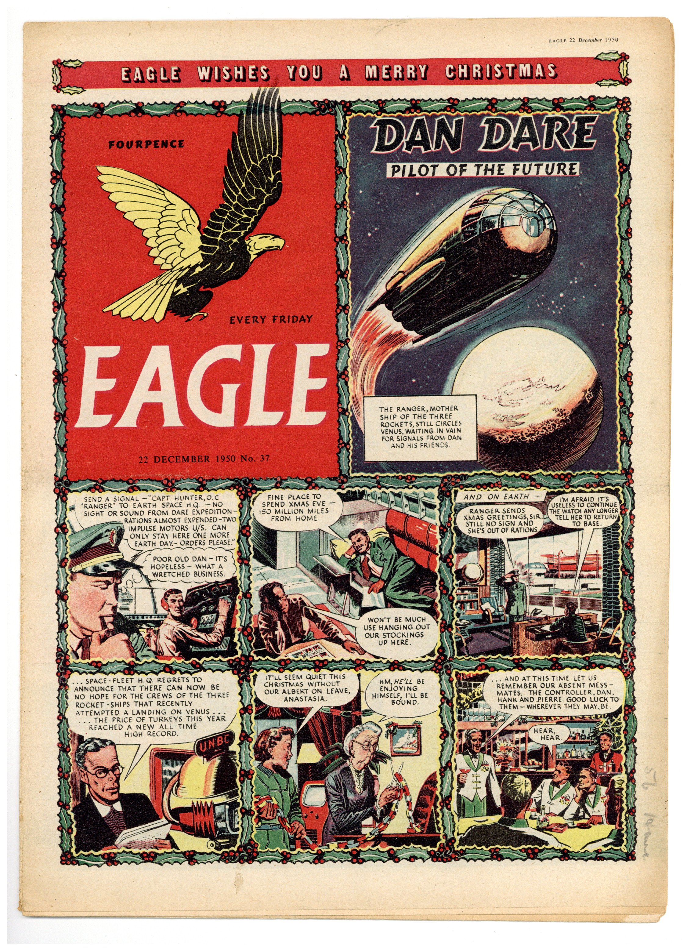 Published Dec 1950 by Hulton Press LTD.$25.00Vol. 1 #37 - Dec. 22, 1950. Contents include Dan Dare, P.C. 49, Riders of the Range begins, Eagle Cutaway centerfold, Skippy the Kangaroo, Real Life Mysteries, The Story of the Christmas Tree, Harris Tweed Extra Special Agent, The Great Adventurer. Plus text stories and articles. 10 1/2-in. x 14 1/2-in., 14 pages, B&W and full color.